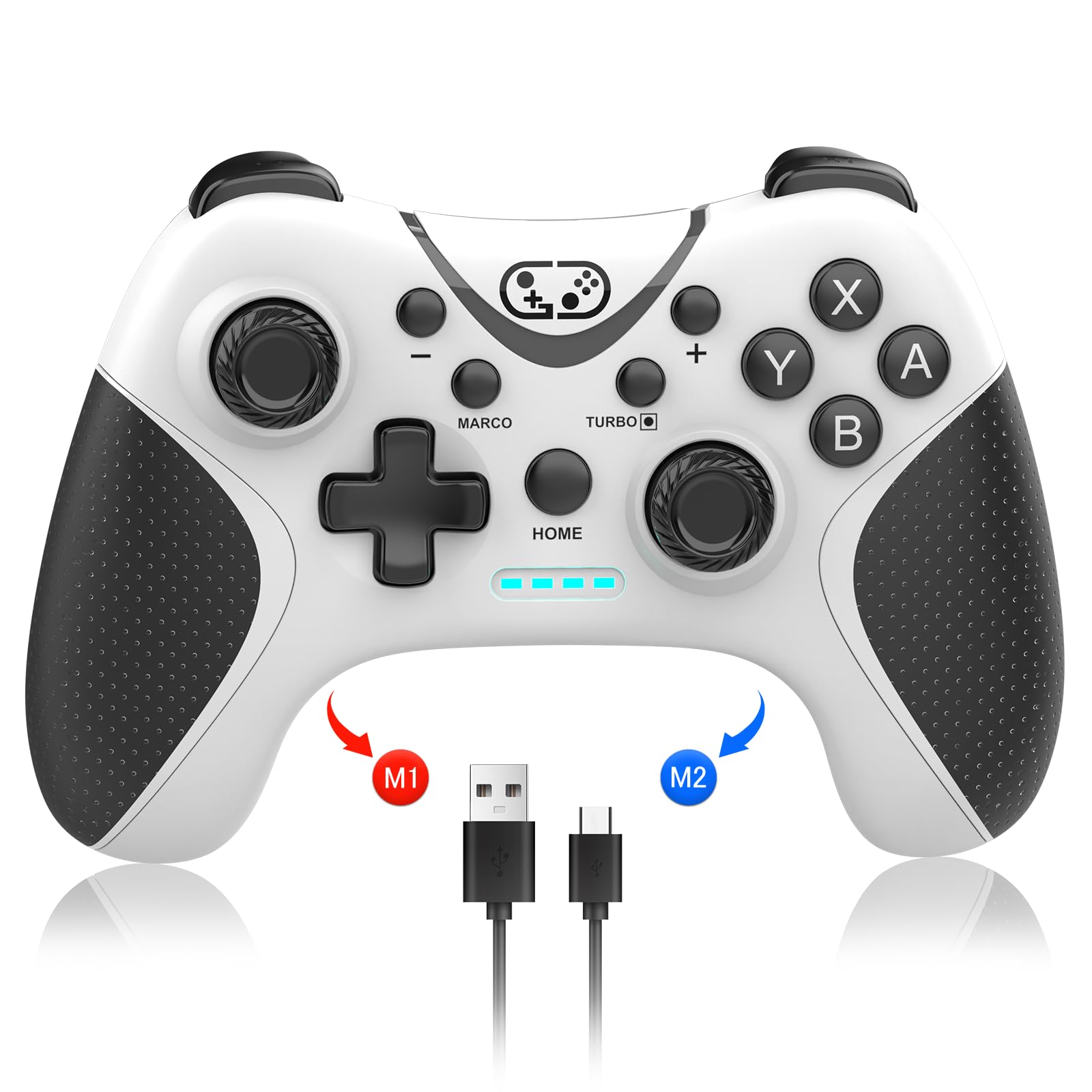Switch/スイッチ コントローラー Bingoods switch2 プロコン 背面ボタン付き マクロ編集 自動連射/連射ホールド Bluetooth5.0ワイヤレス接続 6軸ジャイロセンサー搭載 スリープ解除 Switch1/2/Android/iOS13.0+/PC対応 日本語取扱説明書付き (ホワイト&ブラック)
