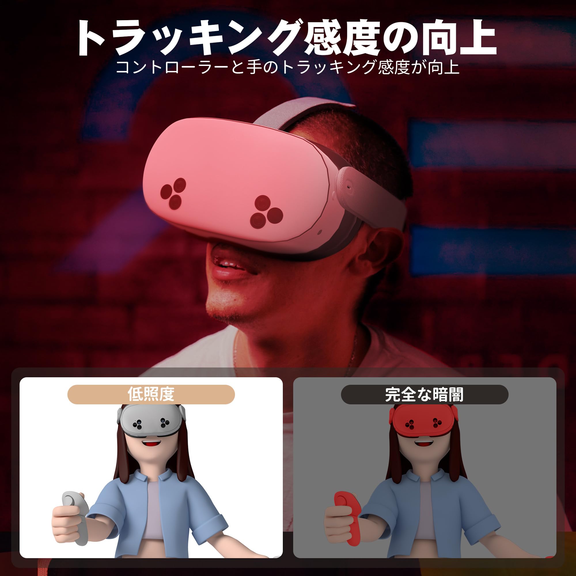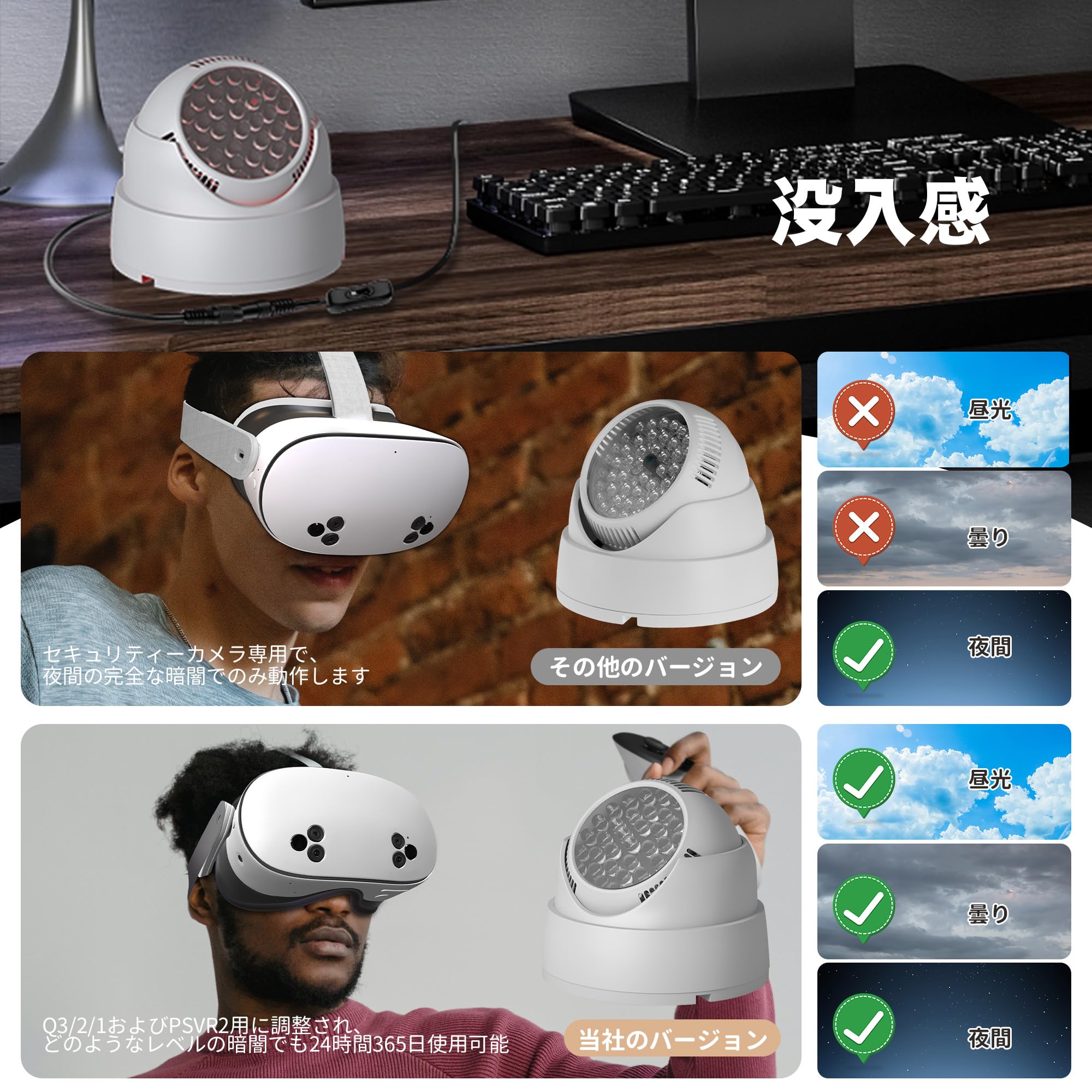 * 【目に見えない光】ヘッドセットのトラッキングシステムを起動し、コントローラートラッキングの感度を上げることで、部屋の照明が不要になります。