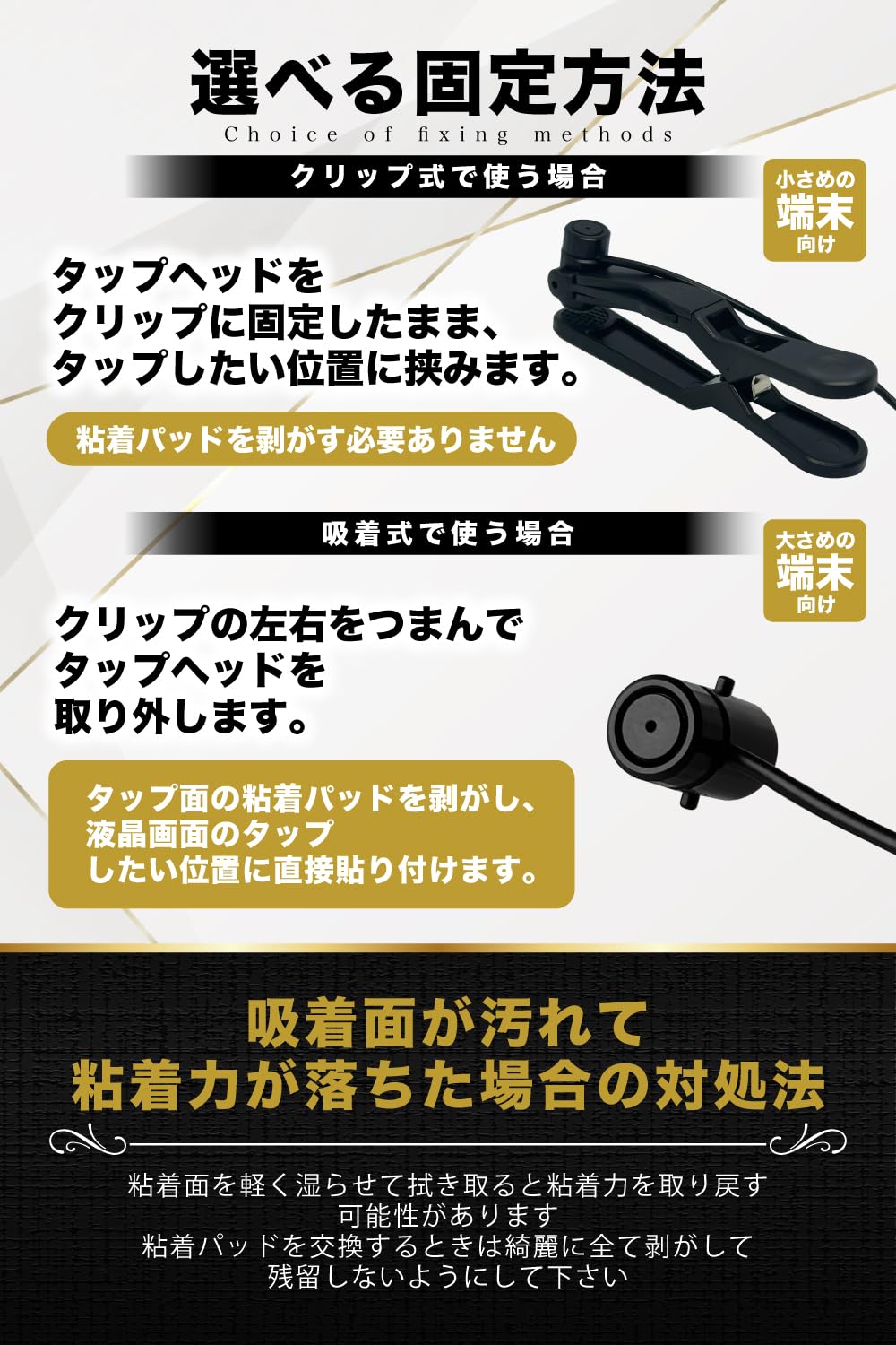 MAKLI スマホ連打装置 自動タップ バッテリー内蔵 オートクリッカー 連打機 タップ機 無音 速度調整可能 デジタル表記 日本語説明書 吸着×クリップ式 (2ヘッド) 【日本企業×1年サービスパック(修理料金全額サポート)】