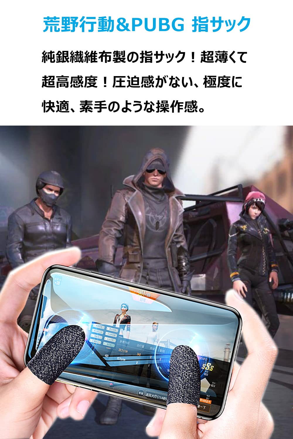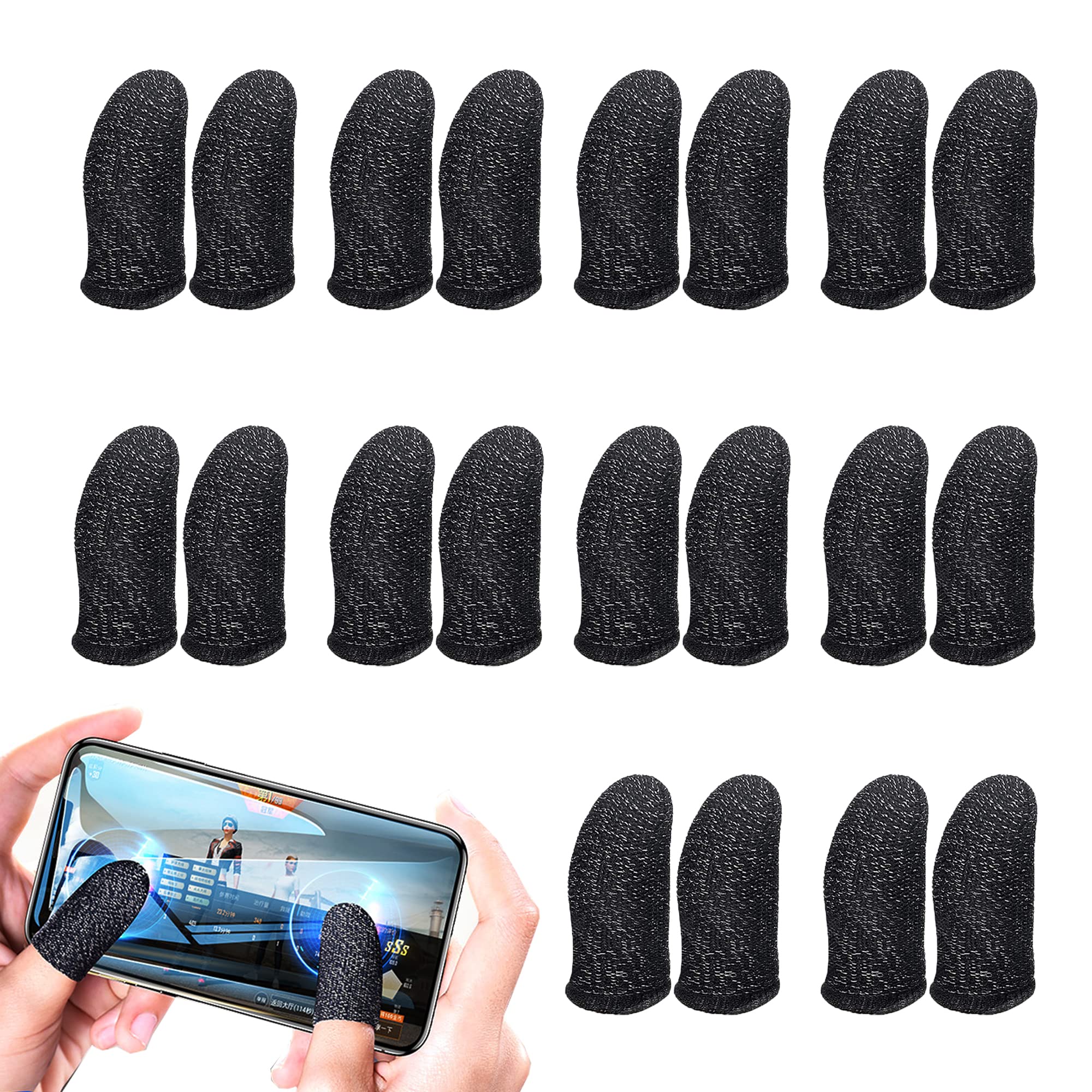 AIYUJIWU 指サック 荒野行動 PUBG Mobile スマホゲーム FPS 音ゲー 操作性アップ 手汗 汗 対策 快適性 指紋 静電気 防止 洗濯可 早い 反応が良い 銀繊維 iPhone/iPad/Android全機種対応 20個入 個別包装 (ブラック)