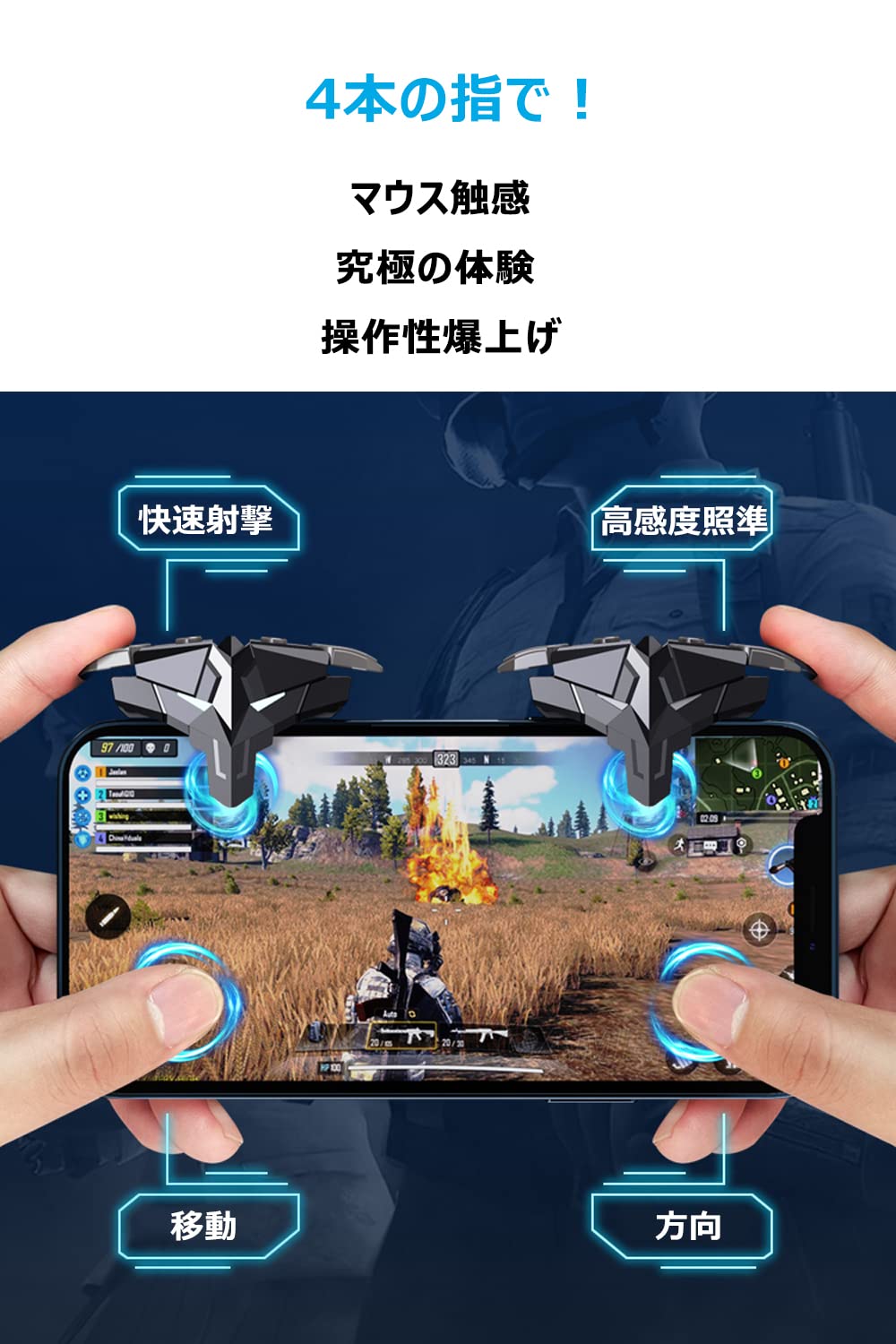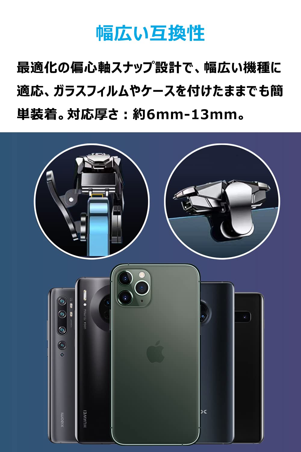 AIYUJIWU スマホ コントローラー 荒野行動 PUBG Mobile codモバイル フォートナイト 金属製 超究極体 最新型 スマホゲーム パッド クリック感 高感度 ジョイスティック 射撃ボタン 高速反応 左右兼用 連続射撃 電源ボタンと干渉しない 無段階調整 ケース対応 iphone/Sharp/Samsung/Xperia/Android 各種ゲーム対応可能