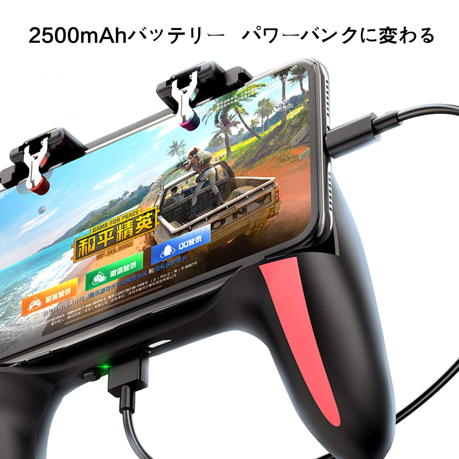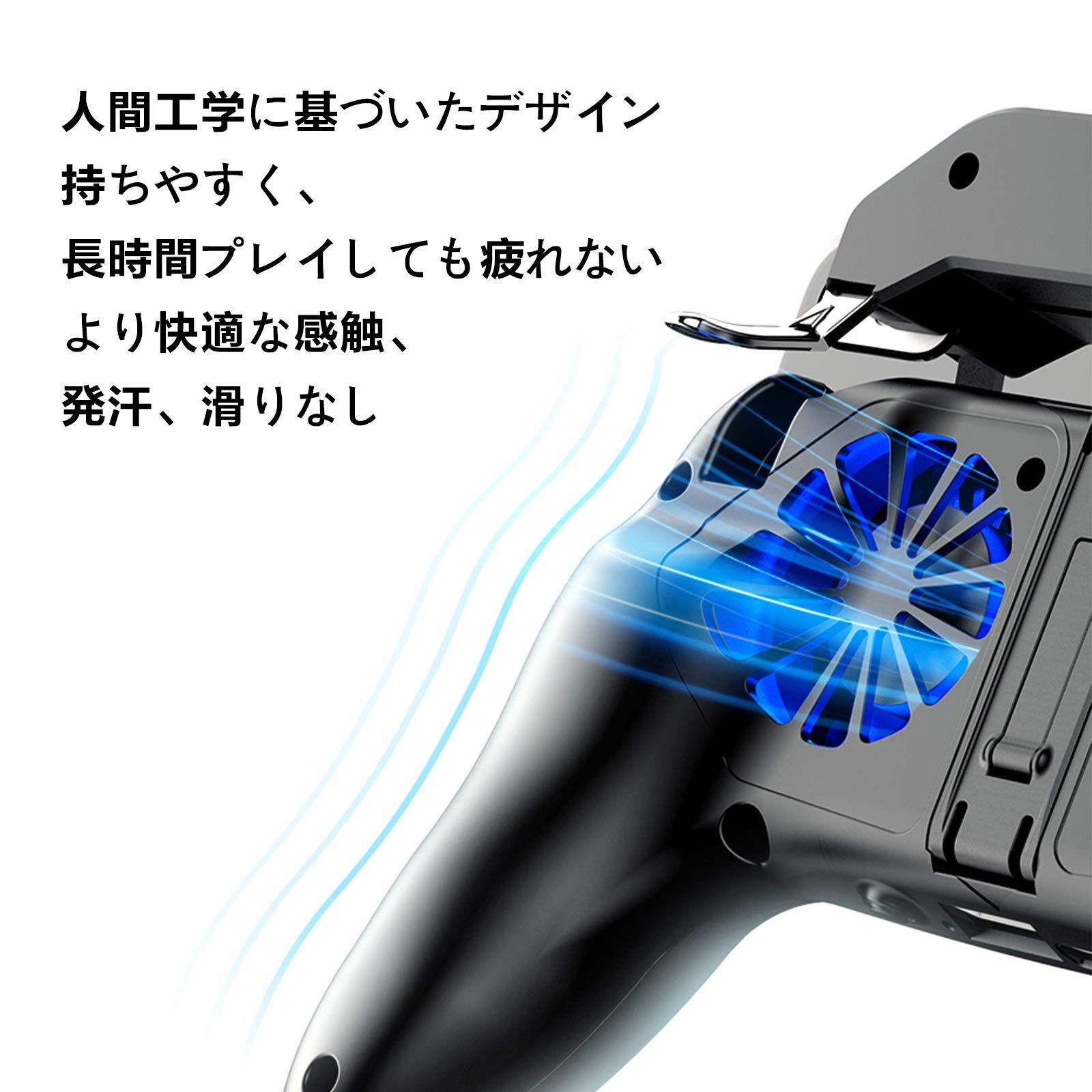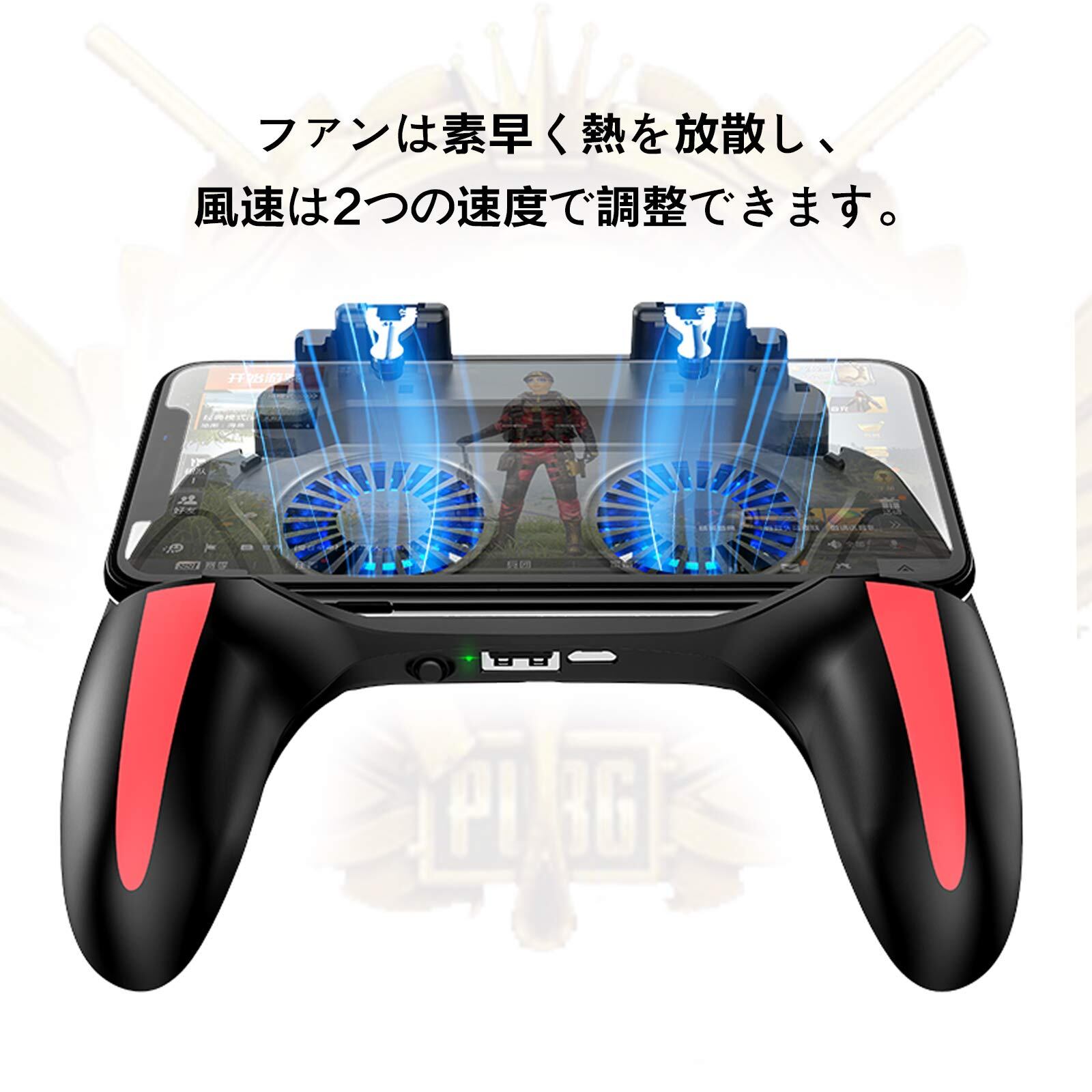 荒野行動 pubg cod mobile codモバイル コントローラー 一体式 使命召唤 4本指操作可能 スマホ散熱器 高感度 射撃ボタン iphone ios android 2段階風量調節ファン 各種ゲーム対応 デュアルファンで急速に放熱(指サック2個)