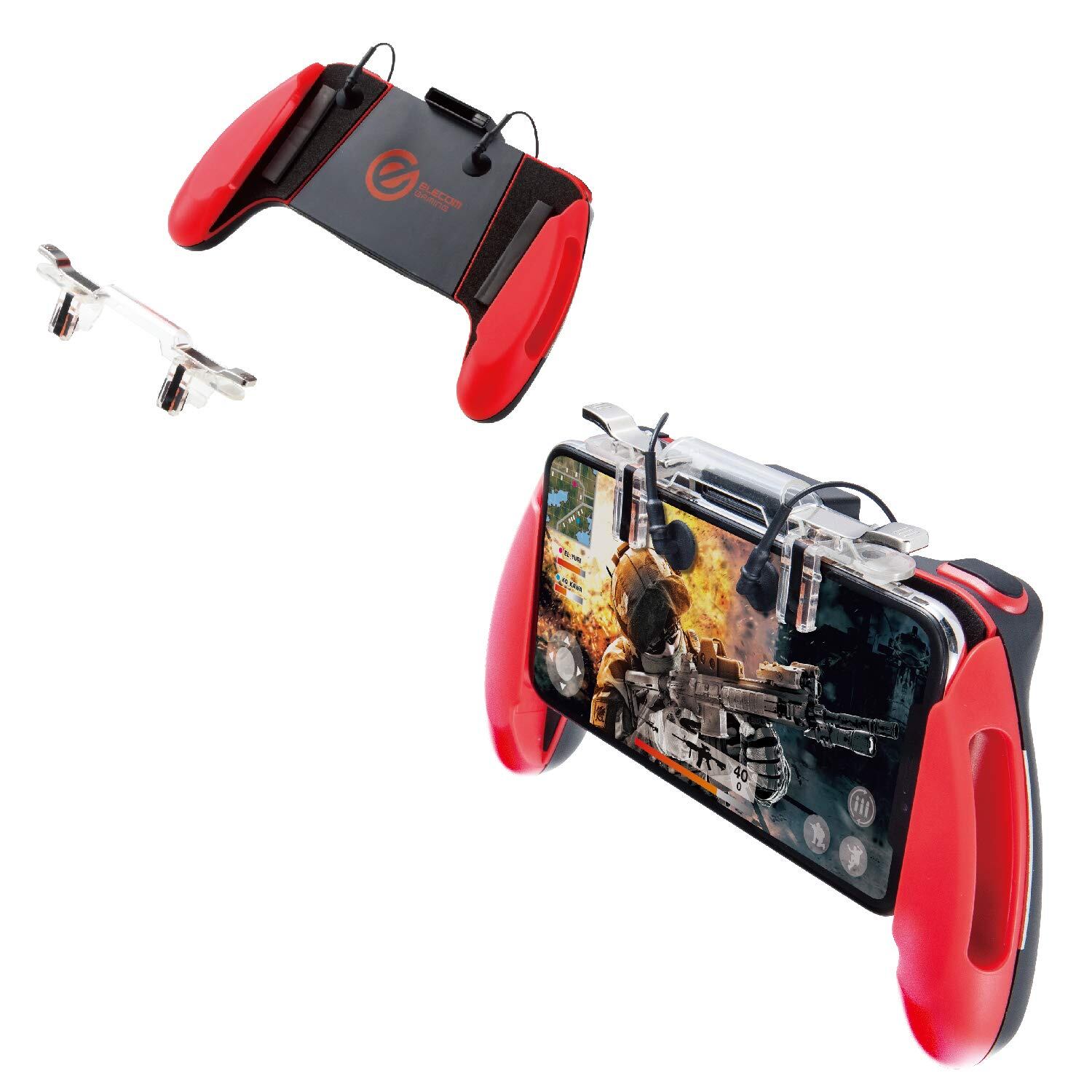 エレコム 荒野行動/PUBG Mobile スマホ用ゲームコントローラー 4ボタン&グリップ 4.7~6.5インチ iPhone/Android レッド P-GMGS4B01RDT