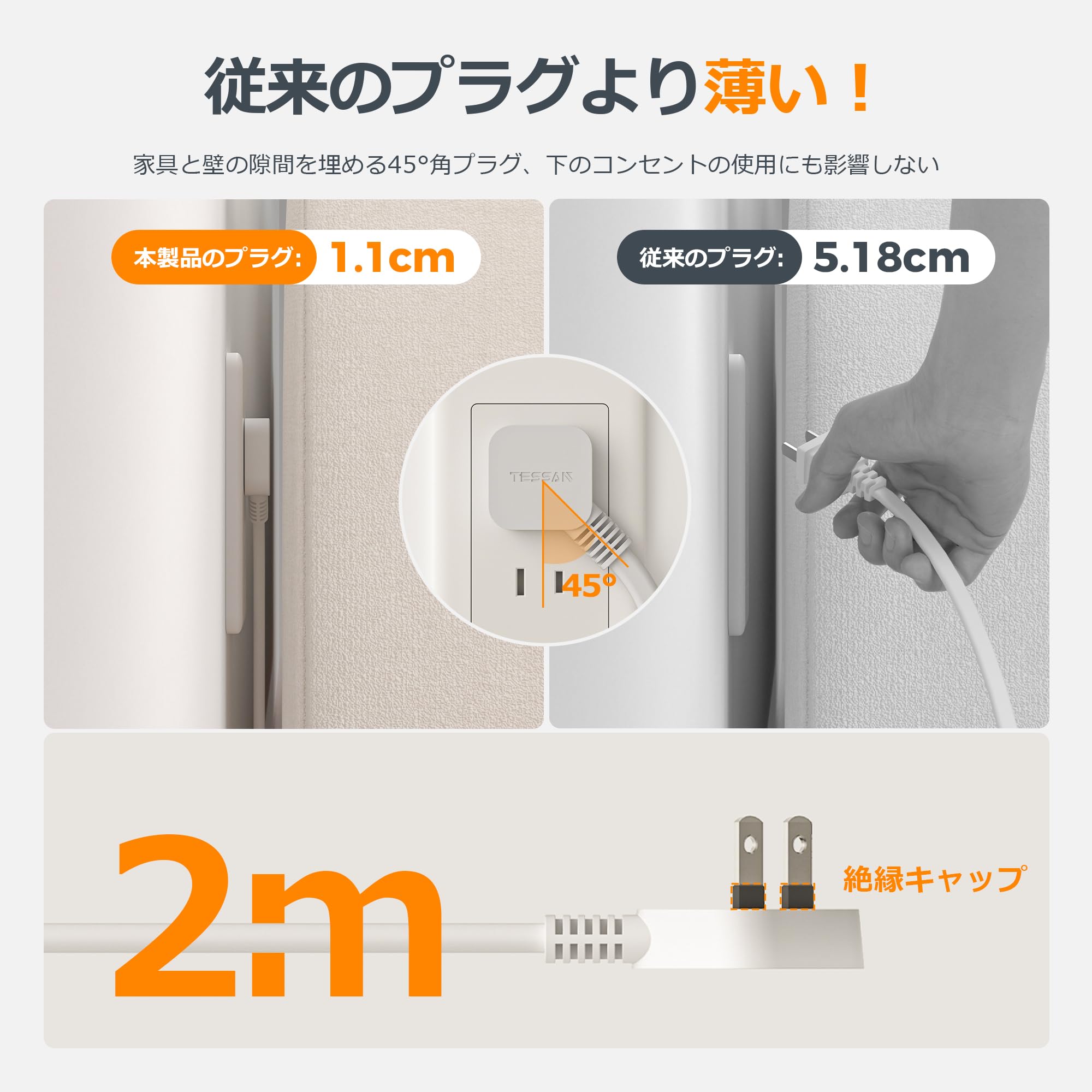 ■ 【薄型プラグとUSB×3】このUSB電源タップは薄型プラグを採用し、3つのUSBポートを備えています。
