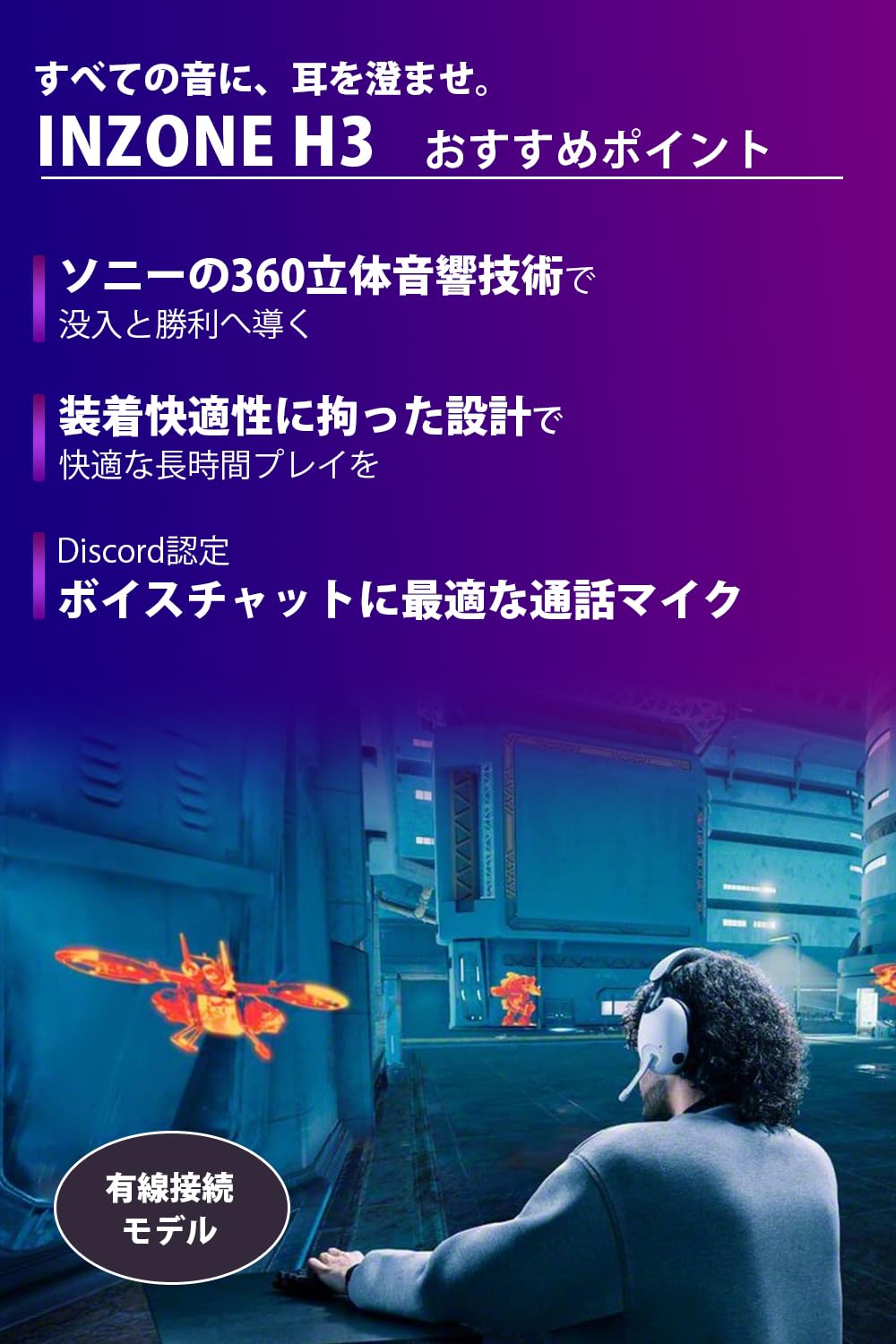ソニー ゲーミングヘッドセット INZONE H3 MDR-G300: 有線 / 立体音響 / 低遅延 / 長時間使用しても疲れづらい / ブームマイク付き / PS5 Switch / テレワークでも使える / EVO Japan 2023公式競技ギア / ホワイト