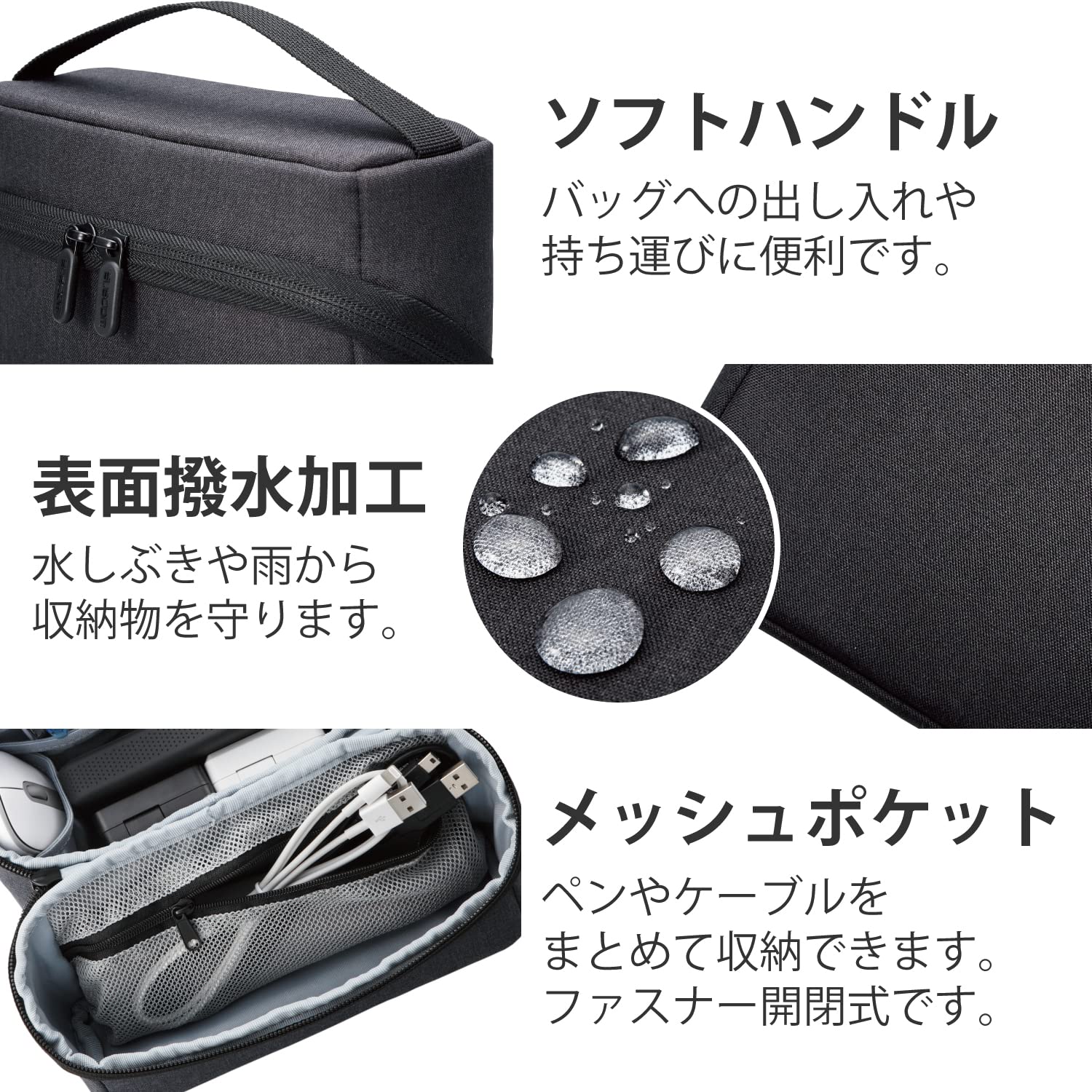 エレコム(ELECOM) オーガナイズポーチ リサイクル素材 大容量収納 取っ手付き 撥水 ブラック BMA-GP18NBK 内寸:幅約195mm×厚さ約55mm×高さ約170mm ※ハンドル除く