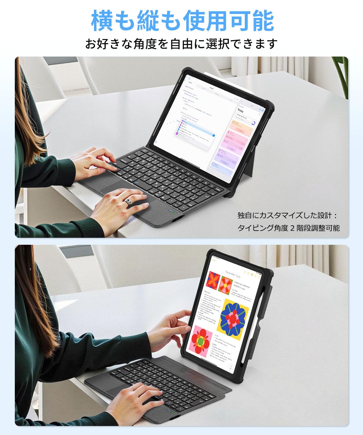 ■ 【横も縦も使用可能】ipad 10.2 キーボード は縦も横も使用可能で、タイピングする場合、一体式になり、仕事の効率を向上できます。