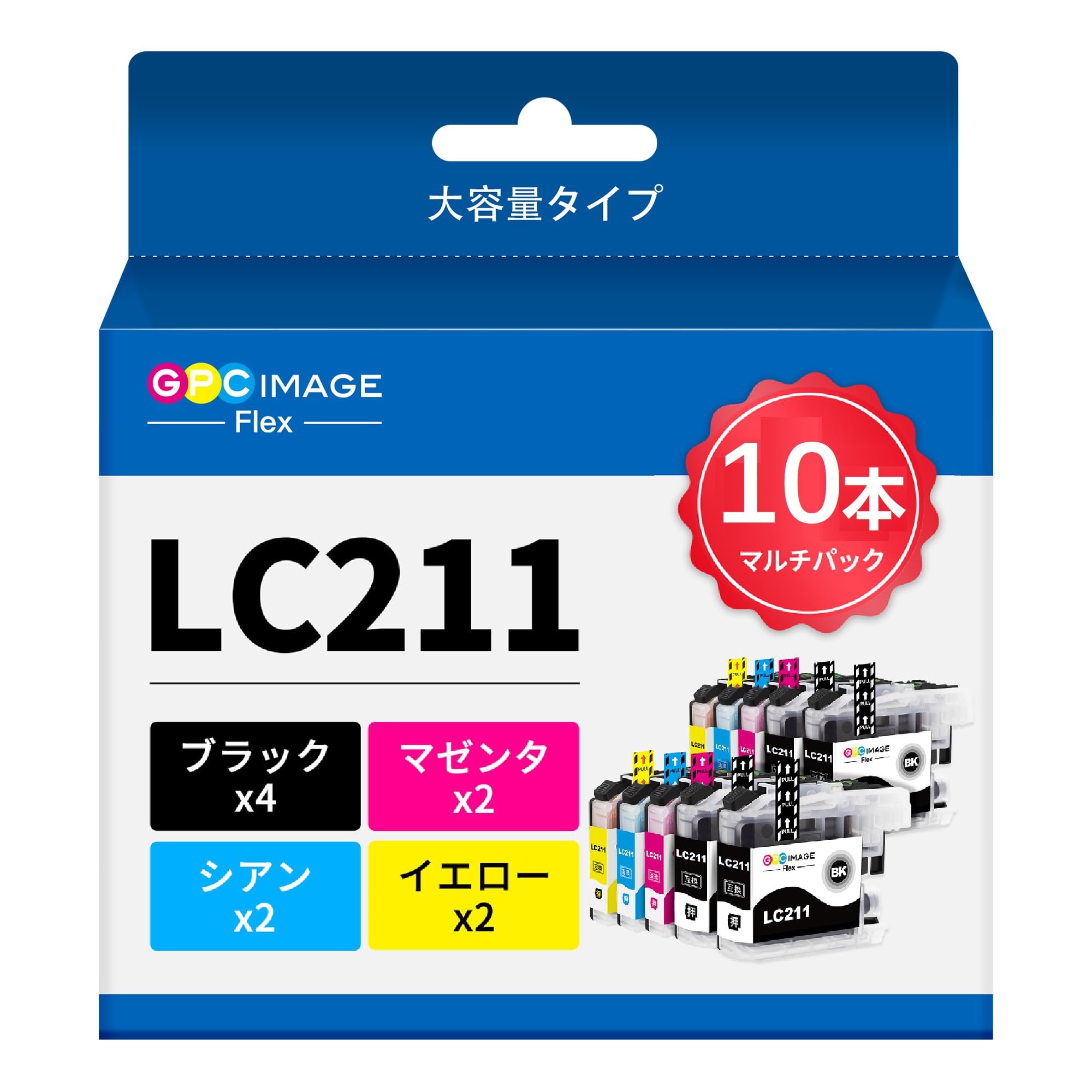 GPC Image Flex ブラザー 用 インク LC211 LC211-4PK 純正と併用可能 大容量 Brother 対応 LC211-4PK ×2 + LC211BK ×2 (計10本) Brother 用 インクカートリッジ lc211 DCP-J562N DCP-J762N DCP-J767N DCP-J962N MFC-J737DN インク 【新・旧パッケージ任意発送】