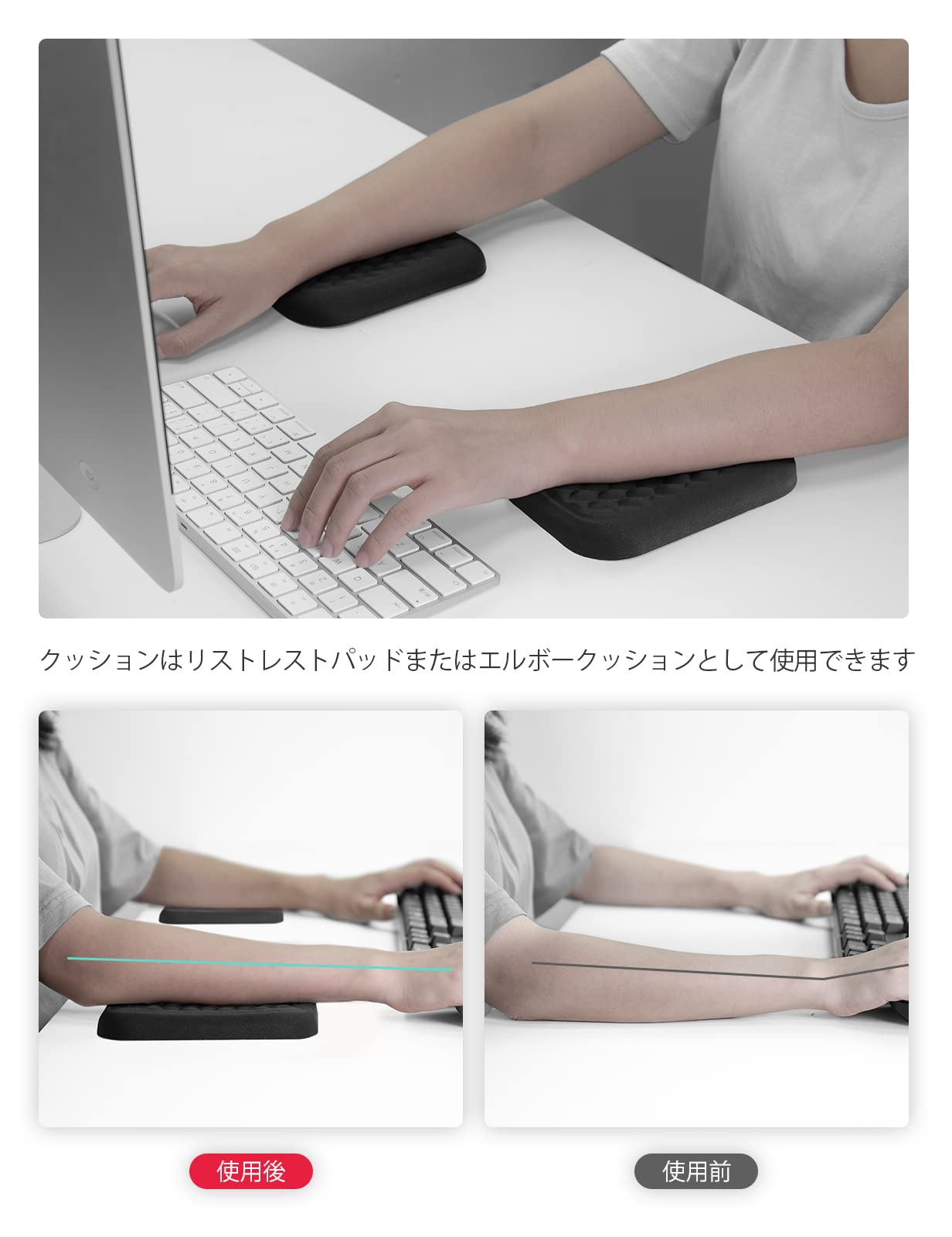 このエルボーレストは、長時間の作業、コンピューターのデスクトップ、キーボードパッド、デスクゲーム、エンターテイメントなどに適しています。
