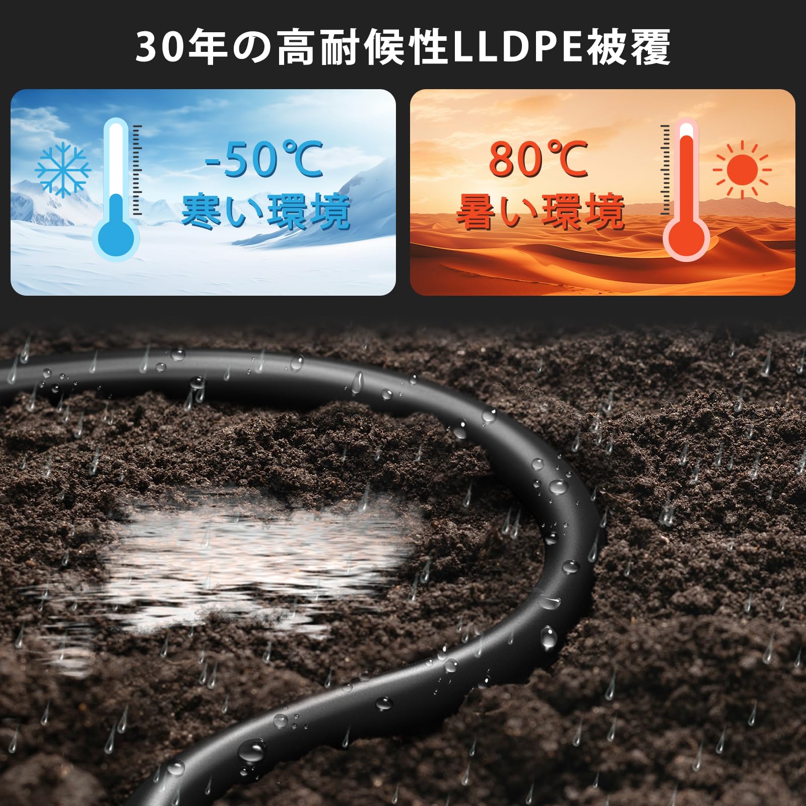 屋外使用可能な耐久性、UV、耐候性、防水、防鼠咬の特徴を有しております。