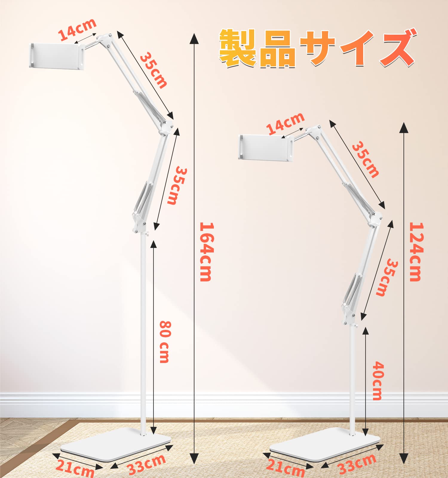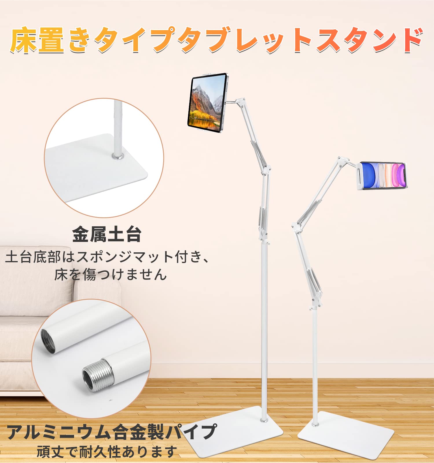 タブレット用アームスタンドは床に置けばあなたの両手を解放します。