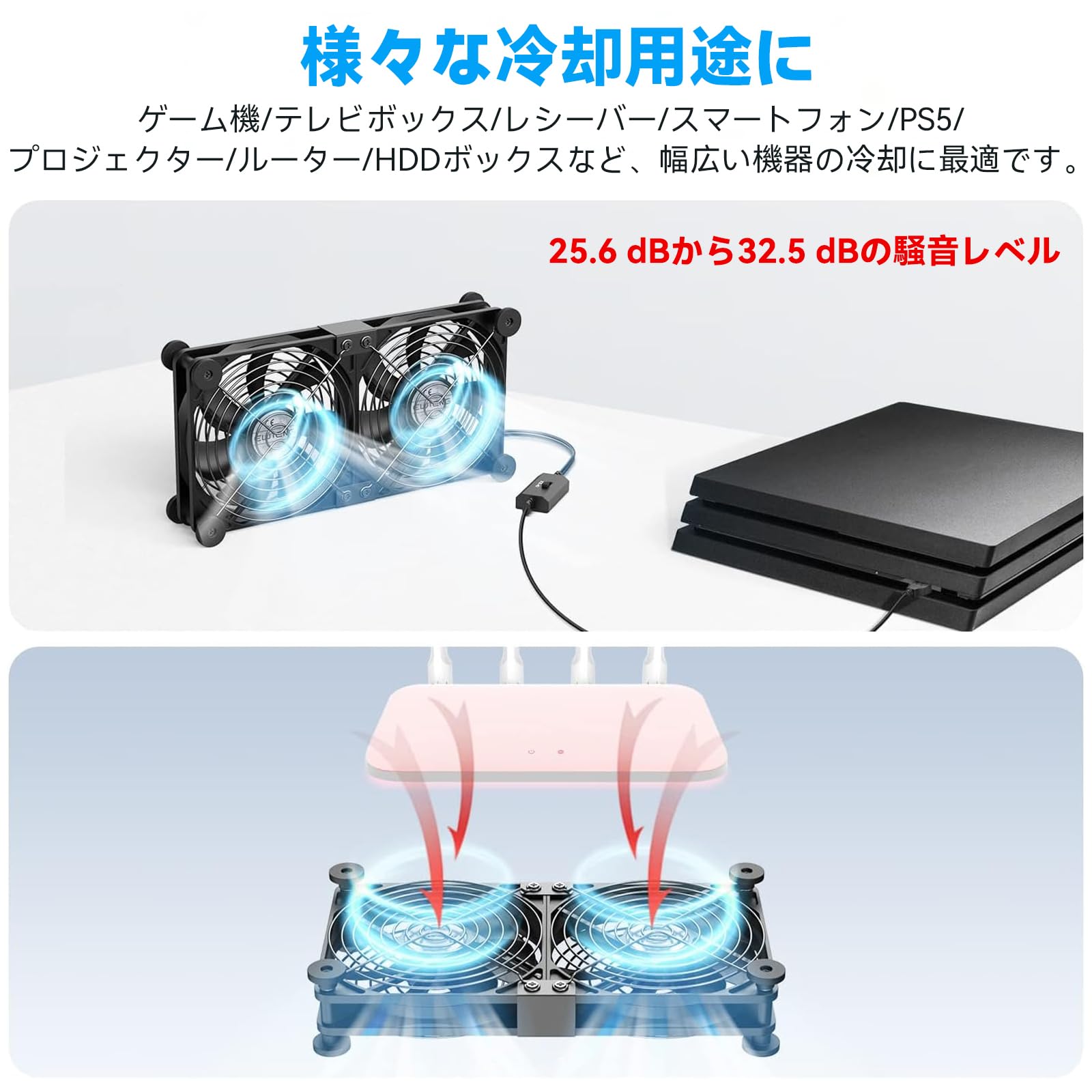 ■ 【幅広い実用性】120mm USBファンはパソコン、ルーター、HDDなどの冷却装置だけでなく、AV機器やゲーム機にも適しています。