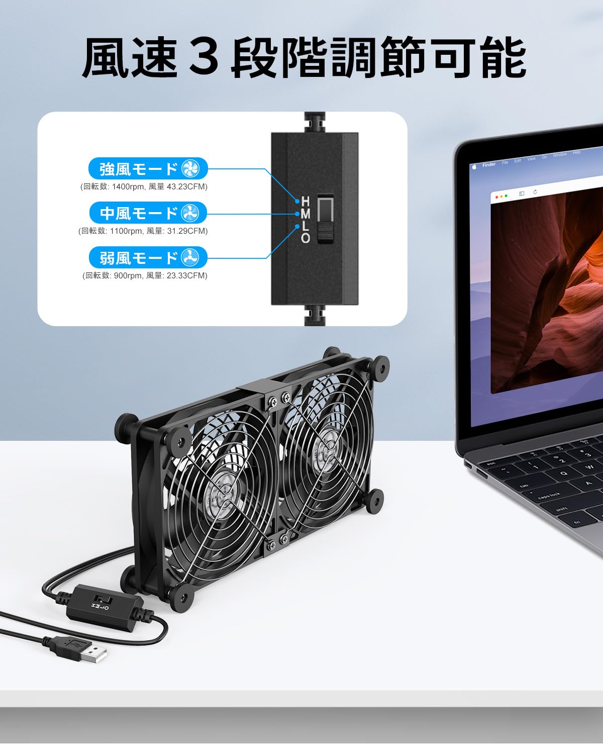 ■ 【3段階風速調節可能】パソコン ファンは面倒な配線が無く、USBインターフェースを採用して、プラグを差し込んで使用できます。