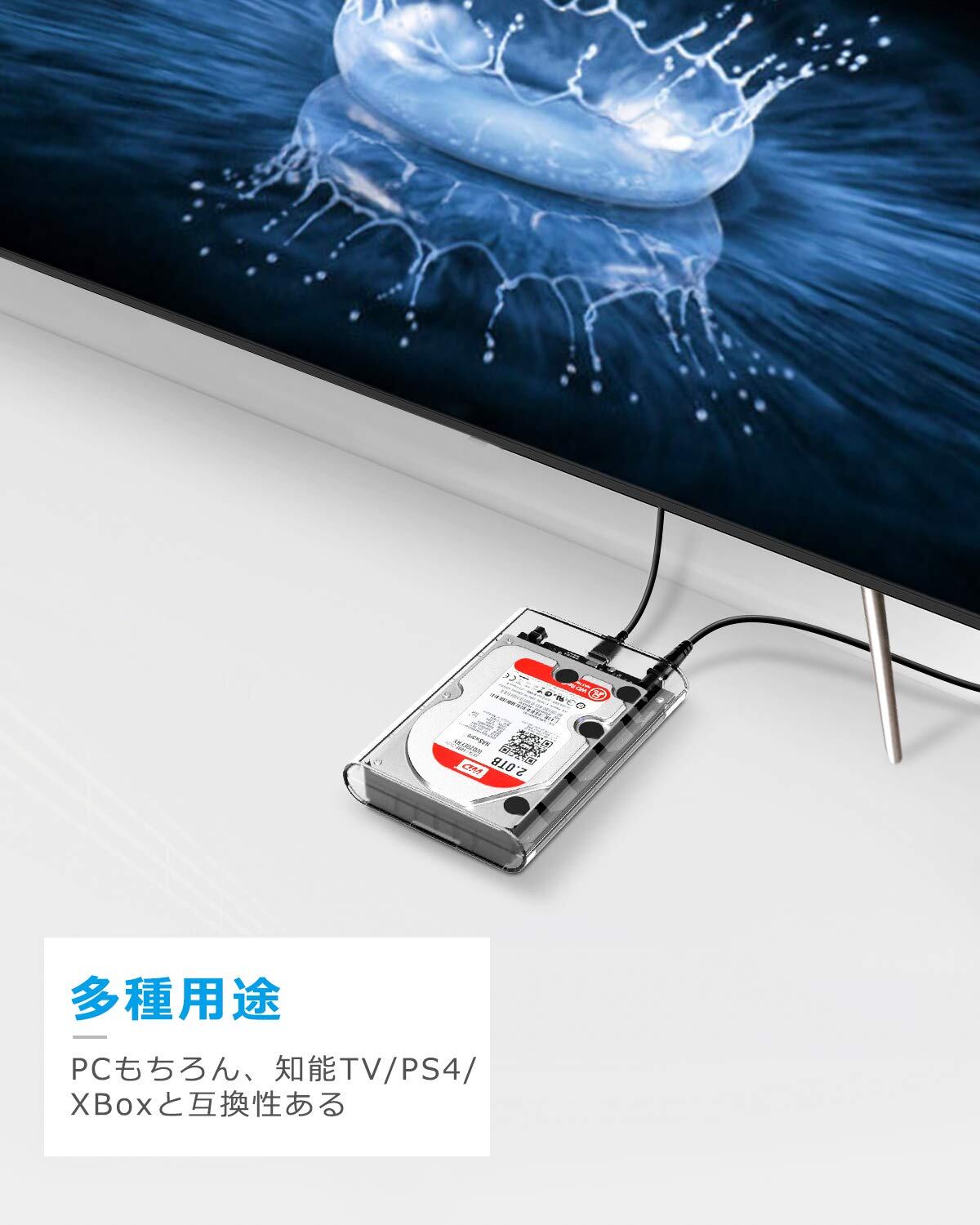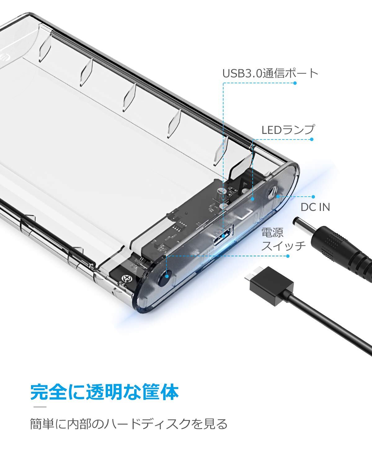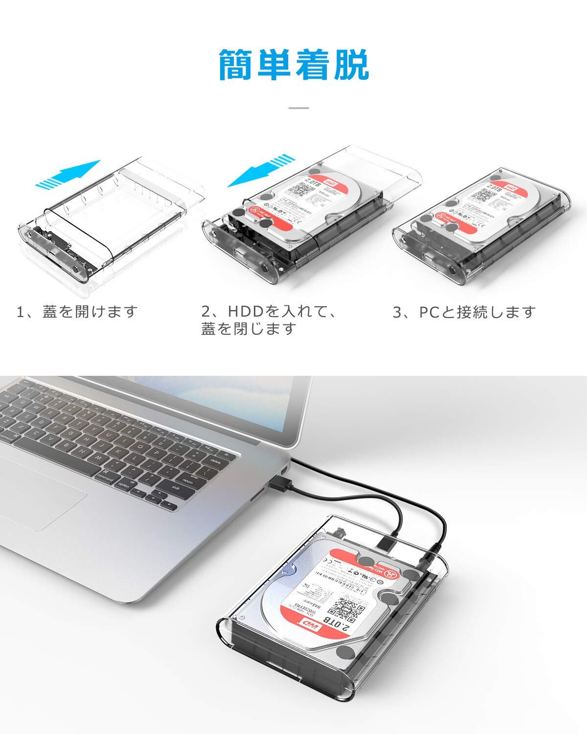 ORICO 3.5インチ HDD ケース USB3.0 ドライブケース SATA3.0接続 5Gbps転送 3.5" HDD対応 16TBまで 電源アダプター付 静電気防止 PC材料 工具不要 透明ケース