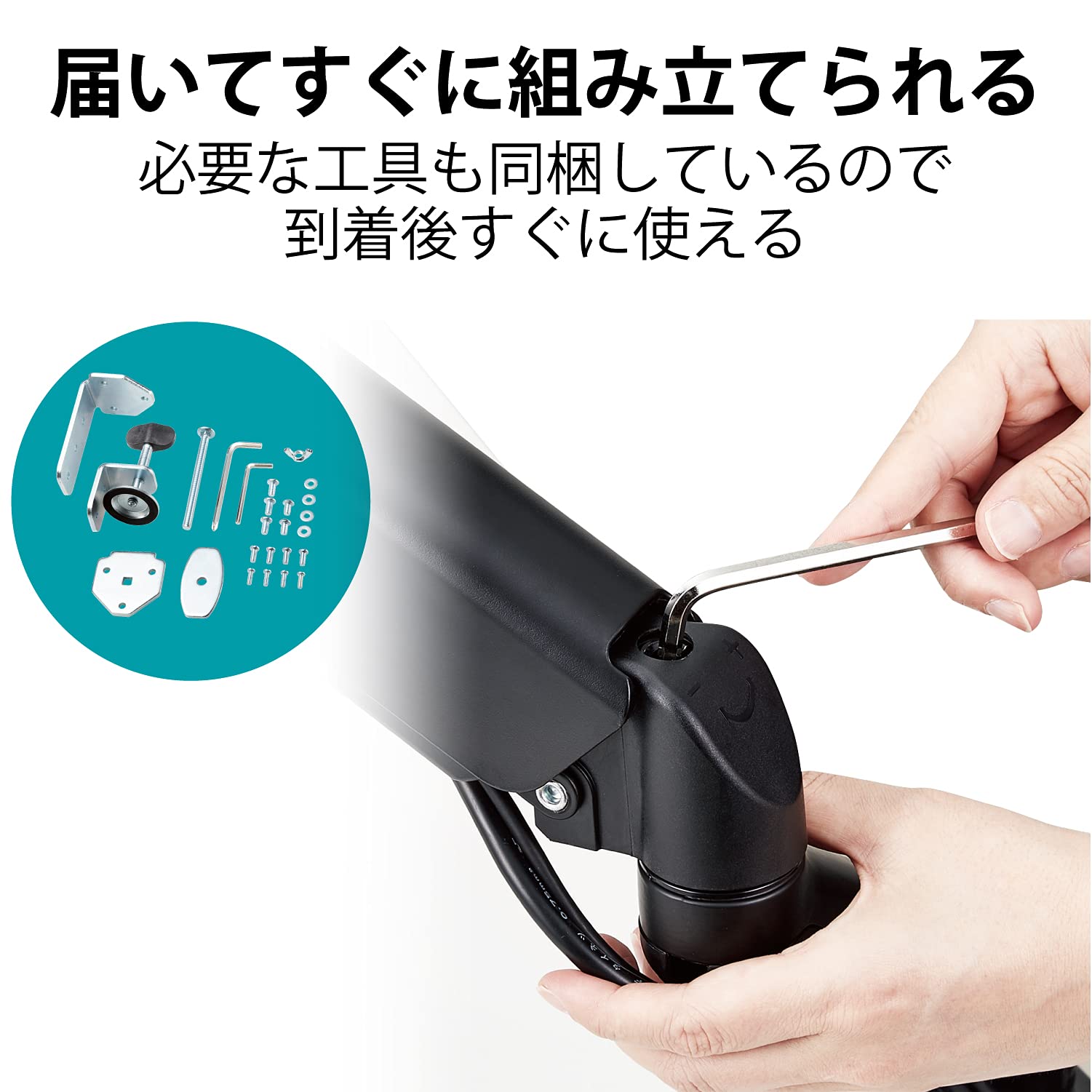 エレコム モニターアーム シングルアーム 17~32インチ対応 耐荷重:9kg ガス式 VESA規格対応 ブラック DPA-SS02BK