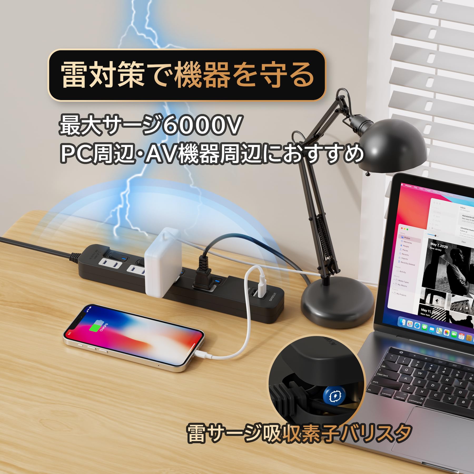 ■ 「こだわりの安心安全設計」雷ガードが雷サージによるダメージから大切な機器やデータを保護(完全内蔵型・作動確認ランプはついていません)。