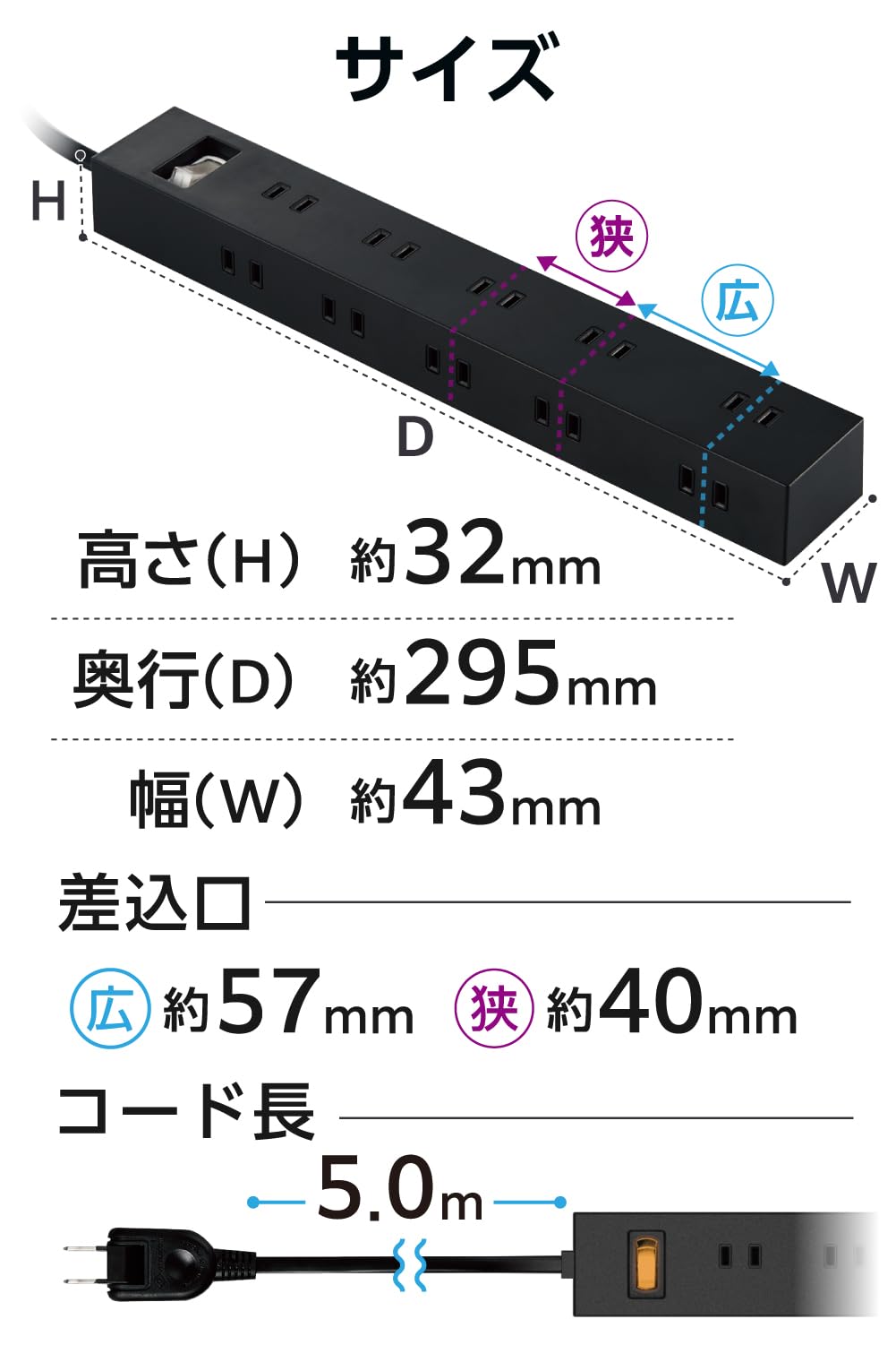 ■ 差込口を2面に分けて配置することで、10個口でありながらコンパクトになっています。