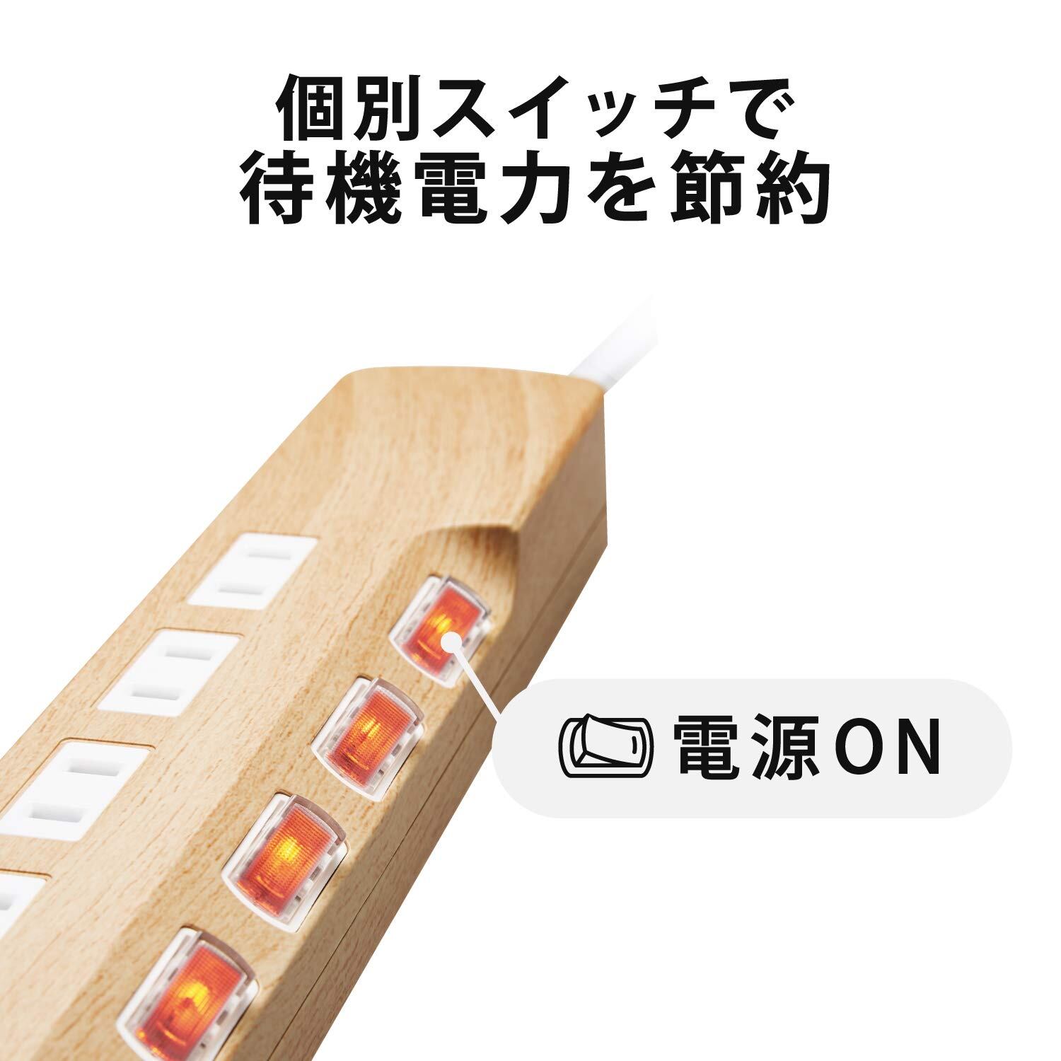エレコム 電源タップ 雷ガード 個別スイッチ ほこりシャッター付 6個口 木目調 3m オーク ECT-1330O