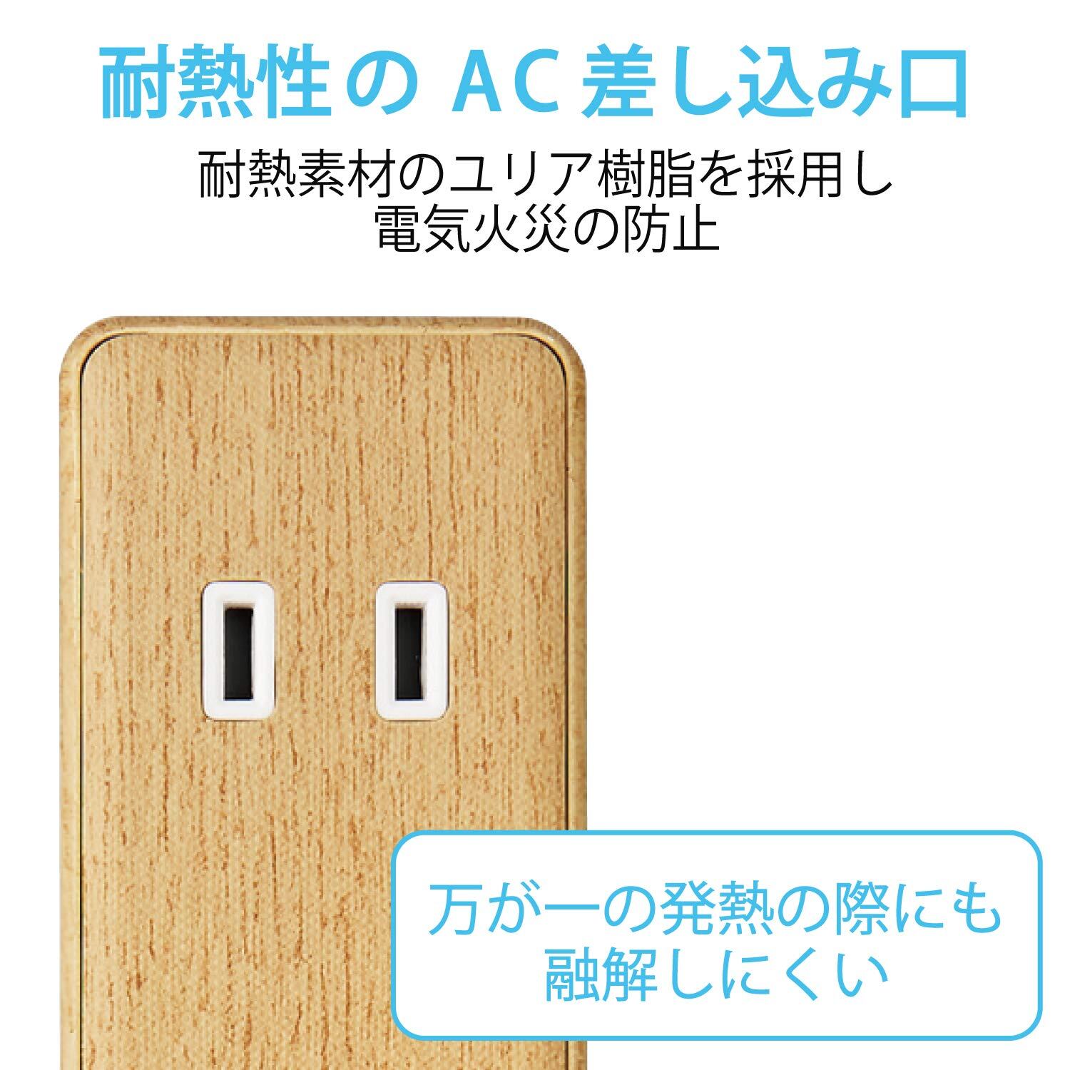 エレコム 電源タップ USBタップ 12W (USBポート×4 コンセント×2) 1.5m オーク ECT-0415O