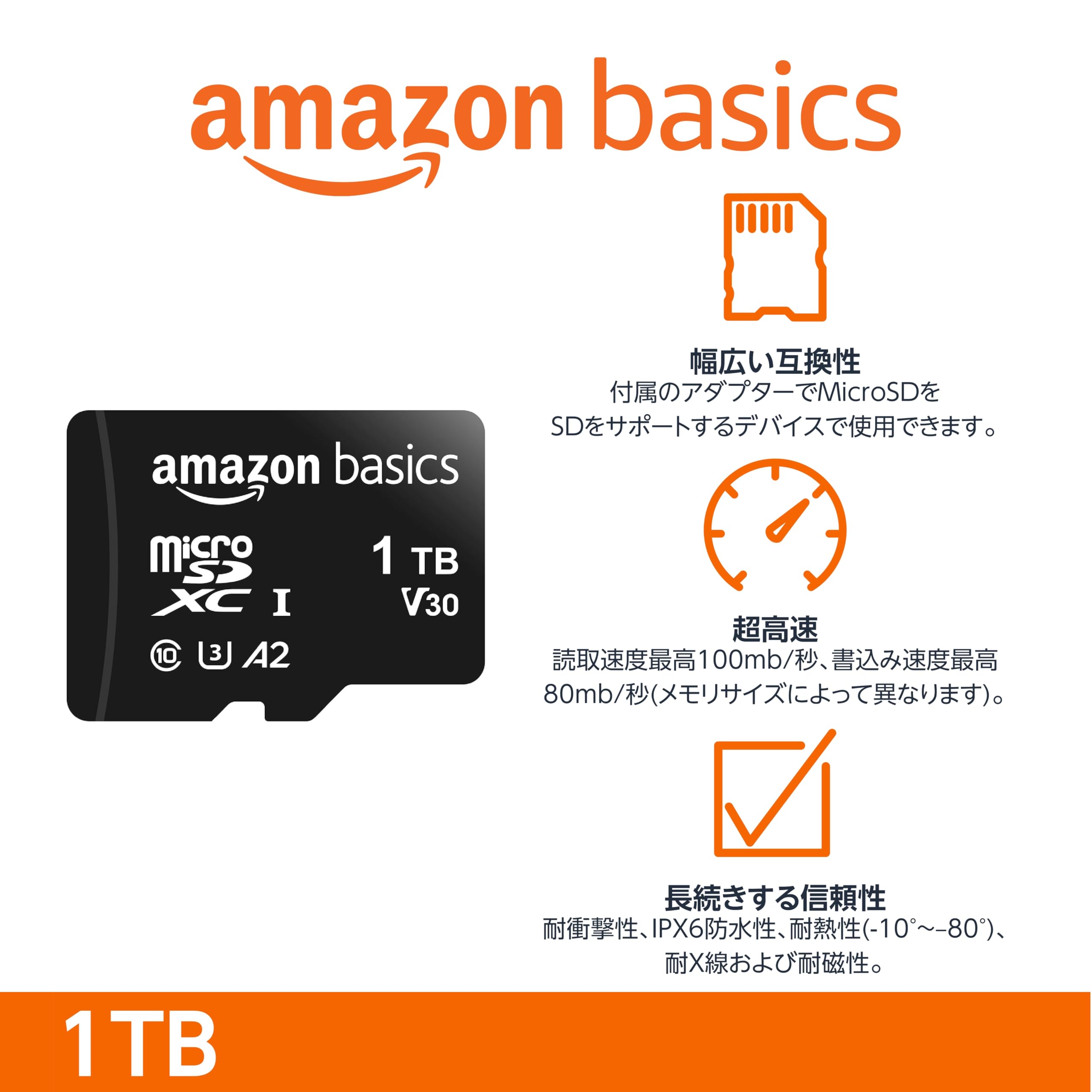 ベーシック microSDXC メモリーカード 1TB フルサイズアダプター付き A2 U3 読み込み速度最大100MB/秒 ブラック