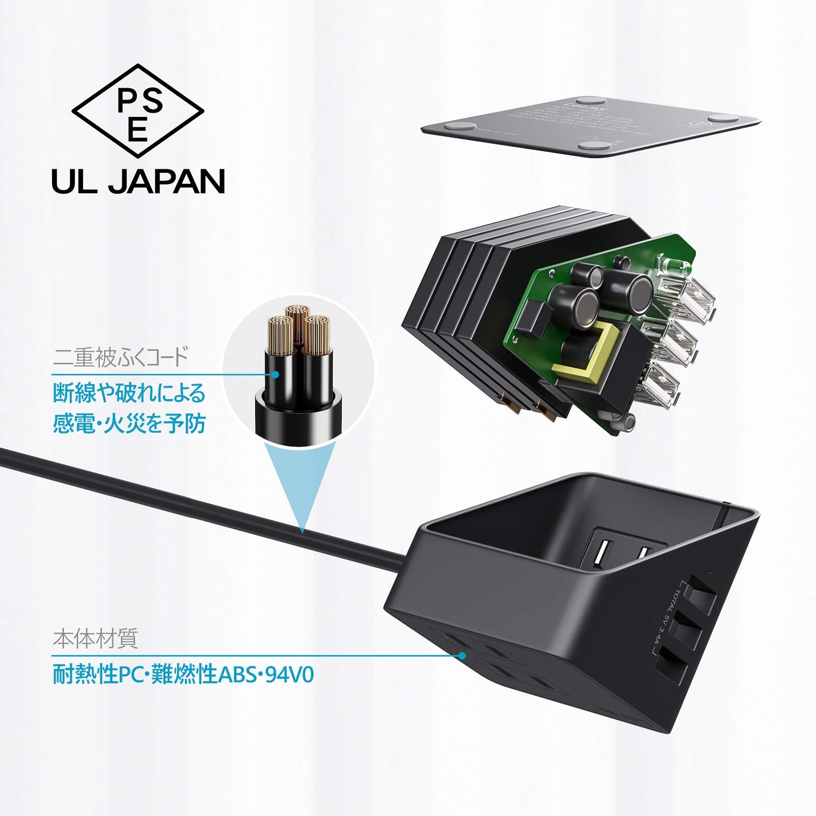 過熱、過電流、過負荷、過充電からお使いの家電を守り、安全で頼りになれるテーブルタップです。
