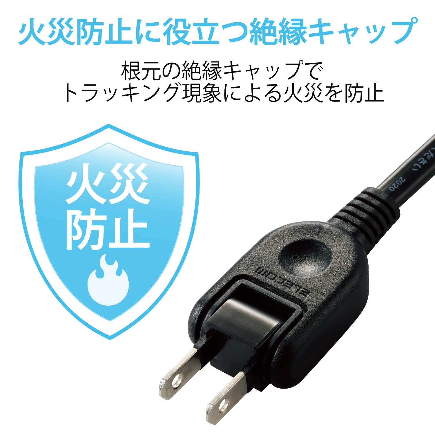 ■ 2ピン式のACプラグ根本には絶縁キャップがついており、トラッキング現象による火災の防止に役立ちます。