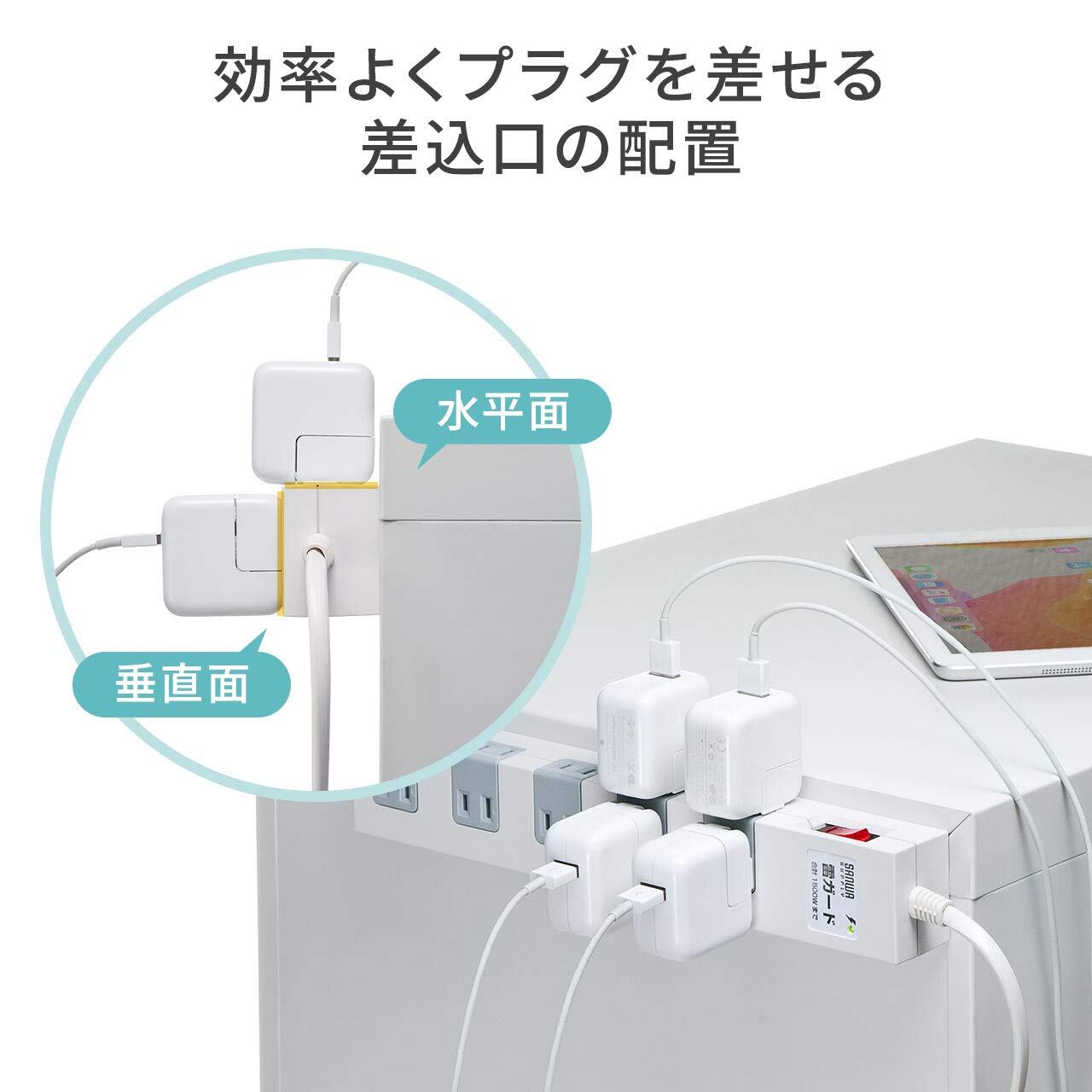 サンワダイレクト 電源タップ 10個口 2m 雷ガード マグネット 一括スイッチ ホワイト 700-TAP044W