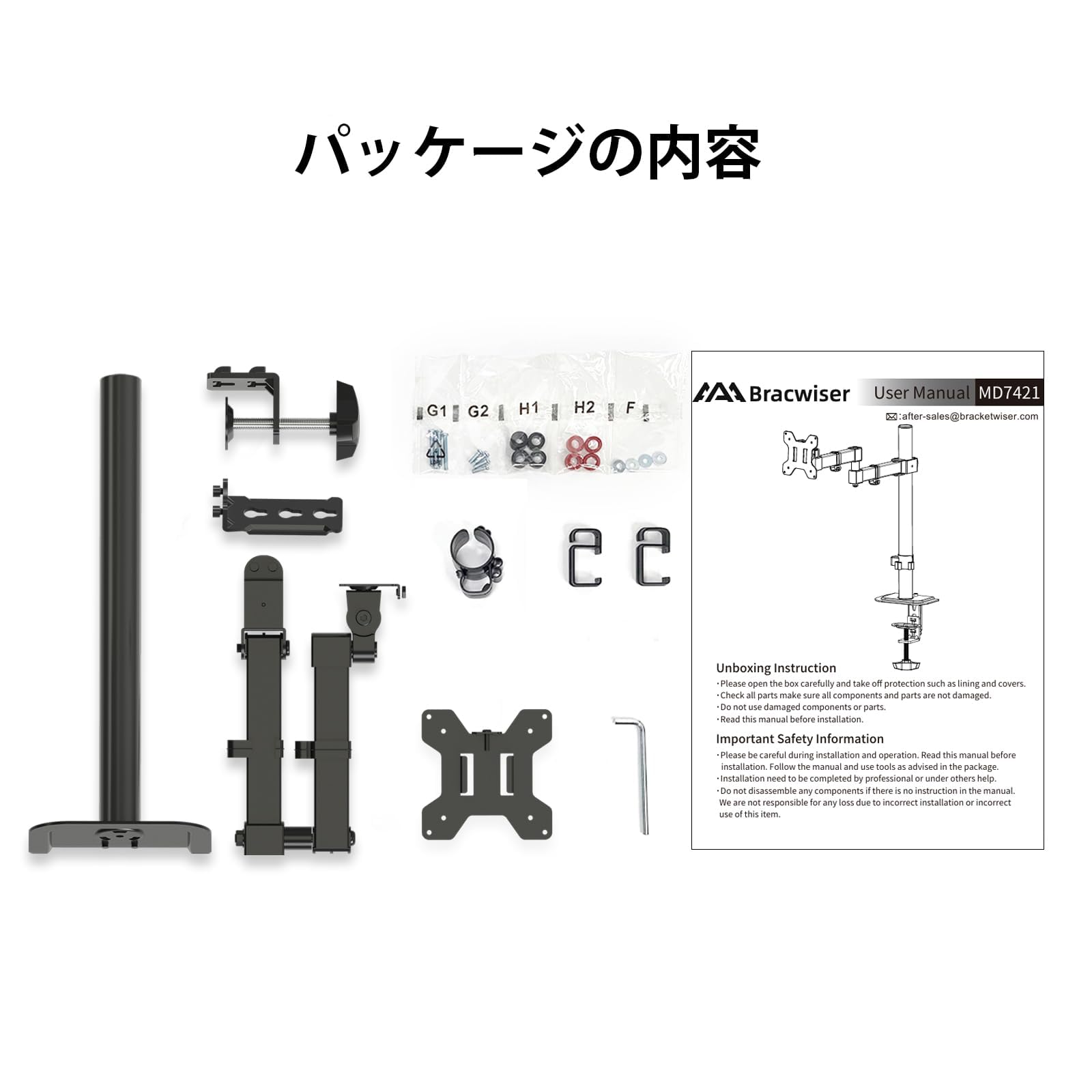 Bracwiser PCモニターアーム ディスプレイアーム モニターアーム 4軸 水平多関節 13-32インチ対応 グロメット式&クランプ式 VESA規格75-100mm 耐荷重10KG MD7421