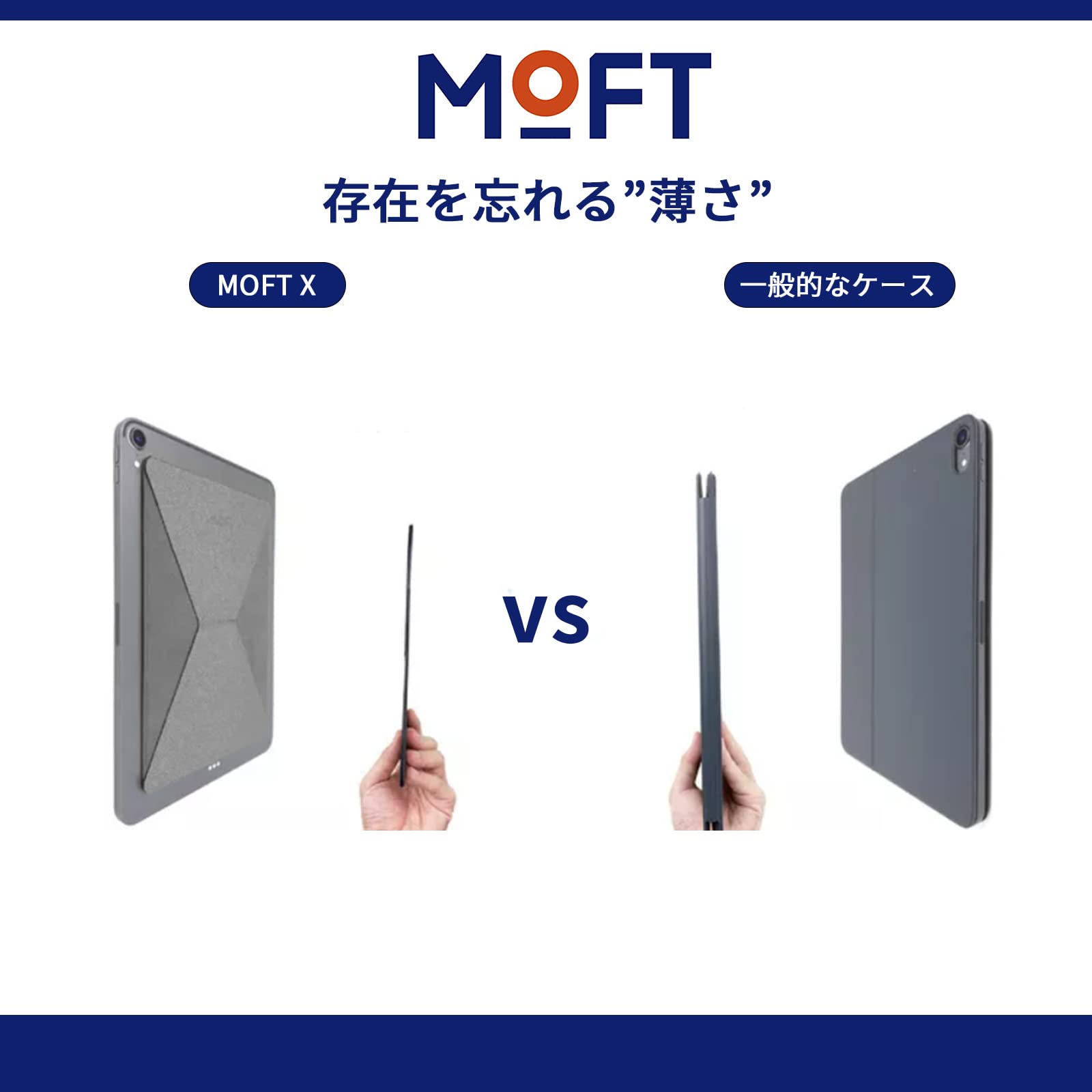 純正のタブレットケースと比較すると、MOFT Xの薄さは一目瞭然。