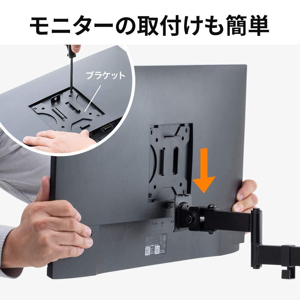 イーサプライ モニターアーム ポール取付 4関節 支柱 32インチまで 耐荷重8kg 多関節 1画面 上下 左右 VESA 75 100 EEX-LAP07