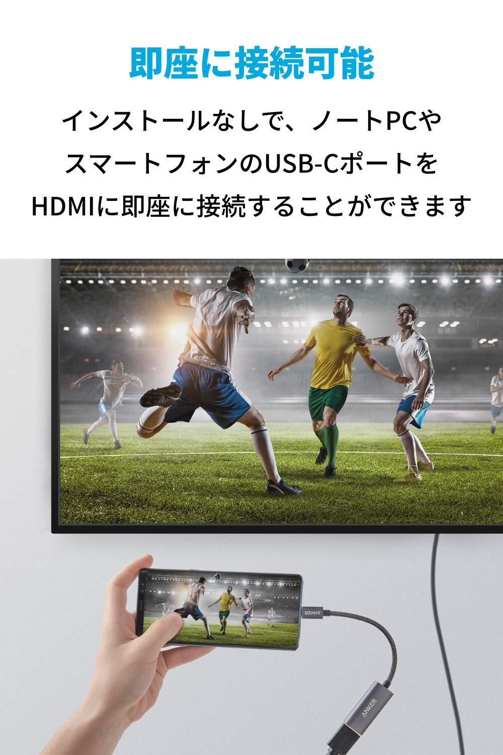 ■ 即座にアクセス可能:インストールなしで、ノートPCやスマートフォンのUSB-CポートをHDMIに即座に接続することができます。