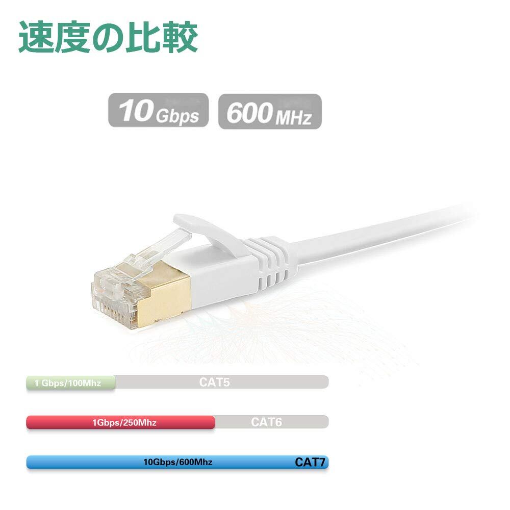 ■ 通信速度アップ:30M有線lanケーブル カテゴリ7に準拠した高速LANケーブルで、次世代の10Gbps対応高速、600MHz((CAT5の6倍、CAT6の2.4倍)伝送帯域幅のイーサネット環境を実現します。
