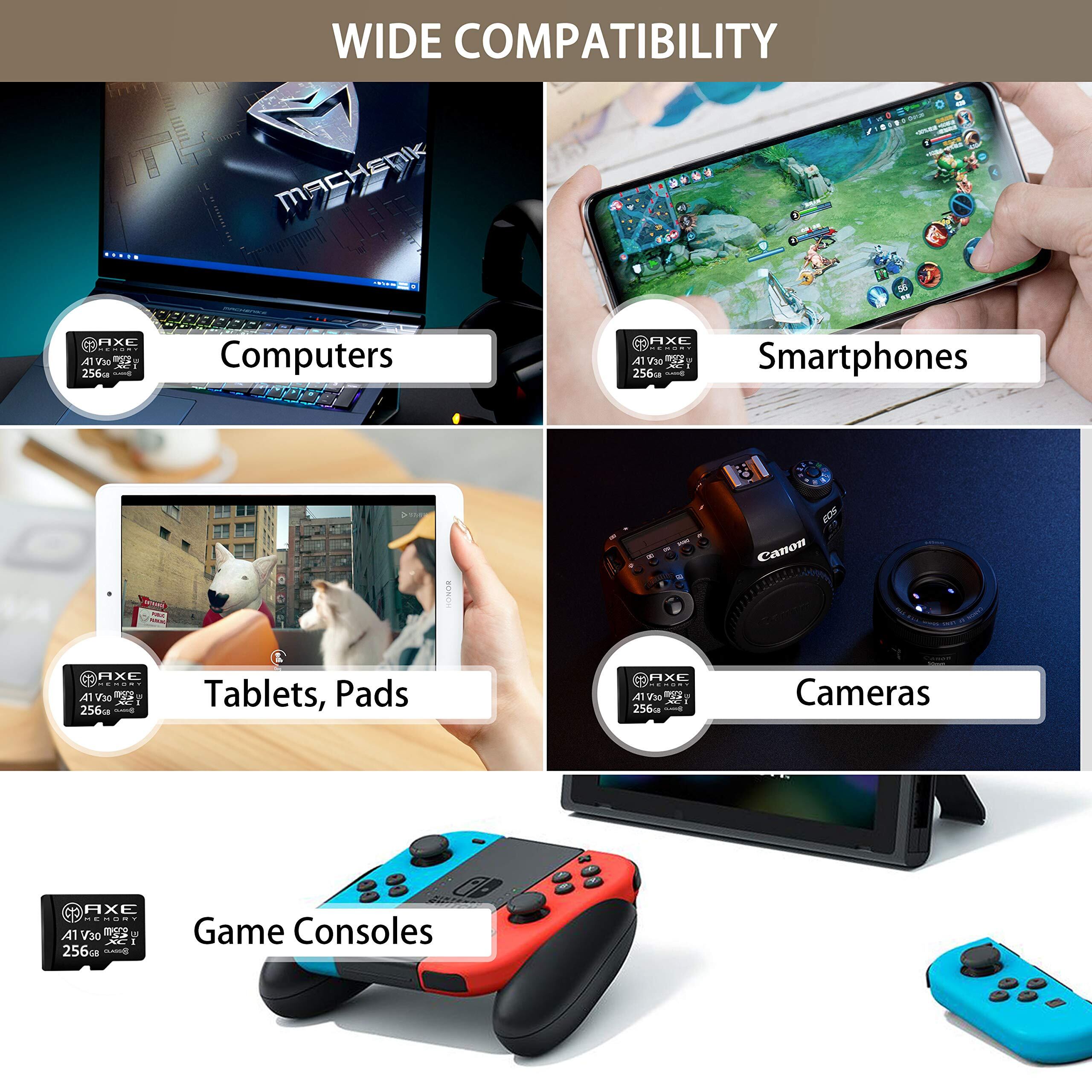 AXE microSD 256GB マイクロsdカード Nintendo Switch SDカード V30 UHS-I U3 A1 C10 4K UHD動画対応 転送速度95MB/S 高速 microSDXC SDアダプター付【アクスメモリ 】