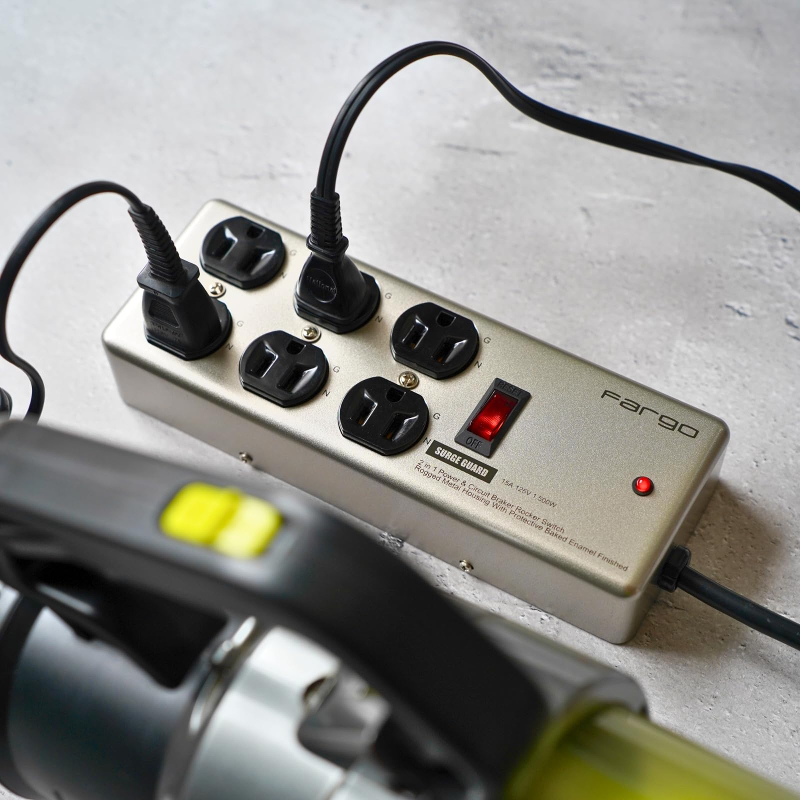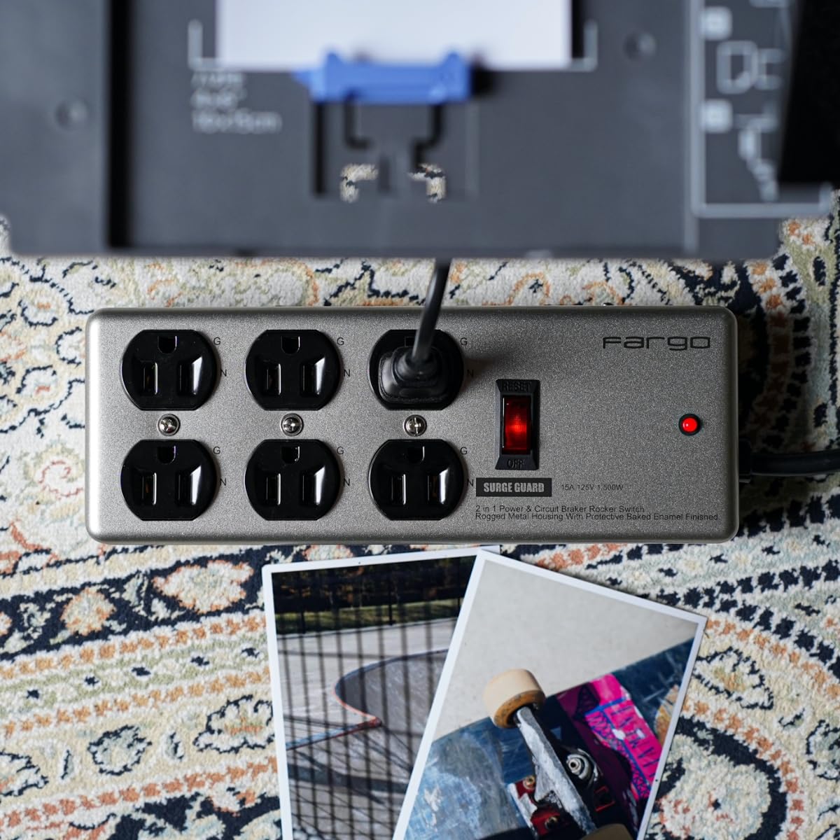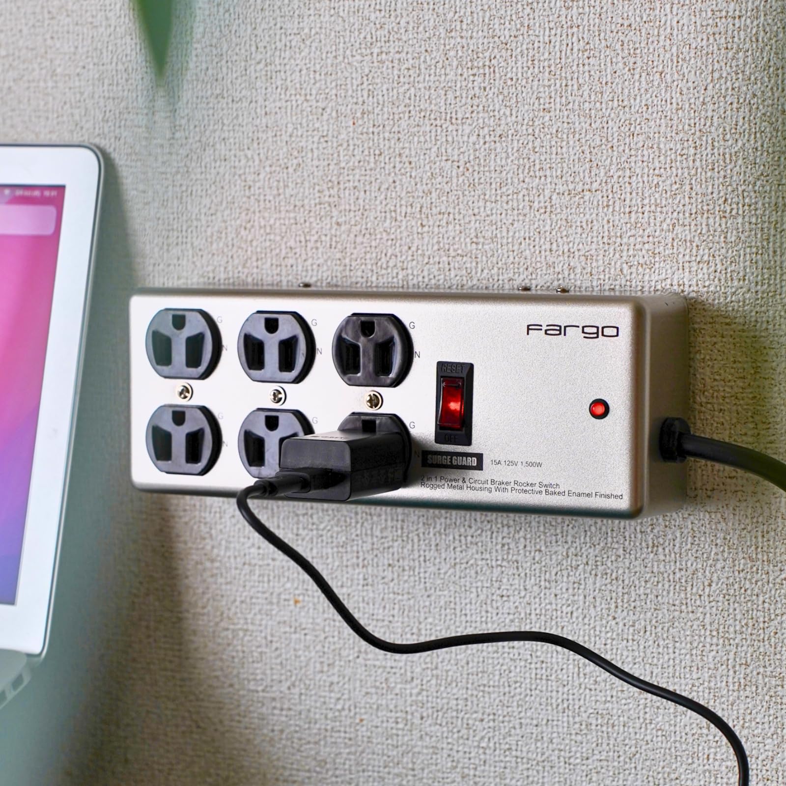 Fargo STEEL TAP 電源タップ スチール製 3ピン対応 アース線付き コード 壁掛け 固定 (シルバー, 6個口1.8m)