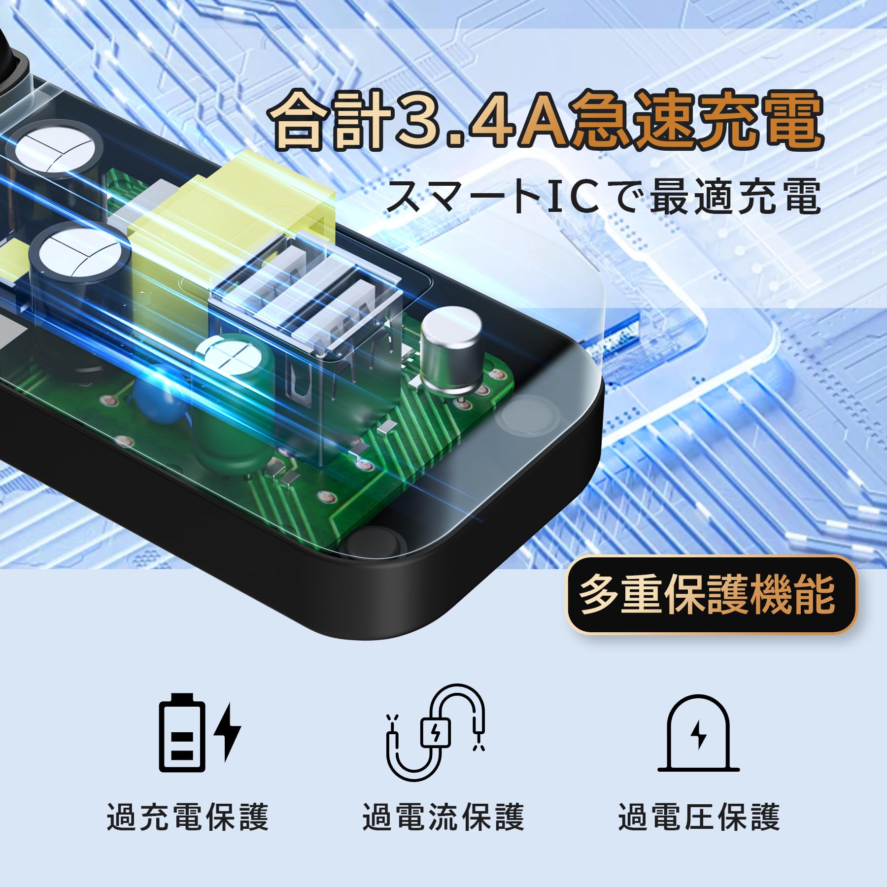 接続するだけでそのデバイスに合った最適な電流(最大合計3.4A)で急速充電を行い、快適な充電をお届けします。
