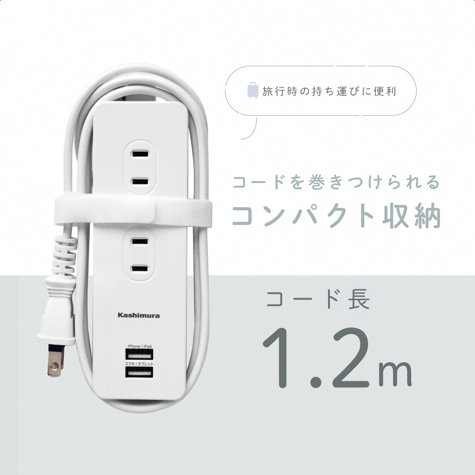 カシムラ 国内・海外両用電源タップ AC4P USB2P 3A WH 1.2m NWM-6 ホワイト
