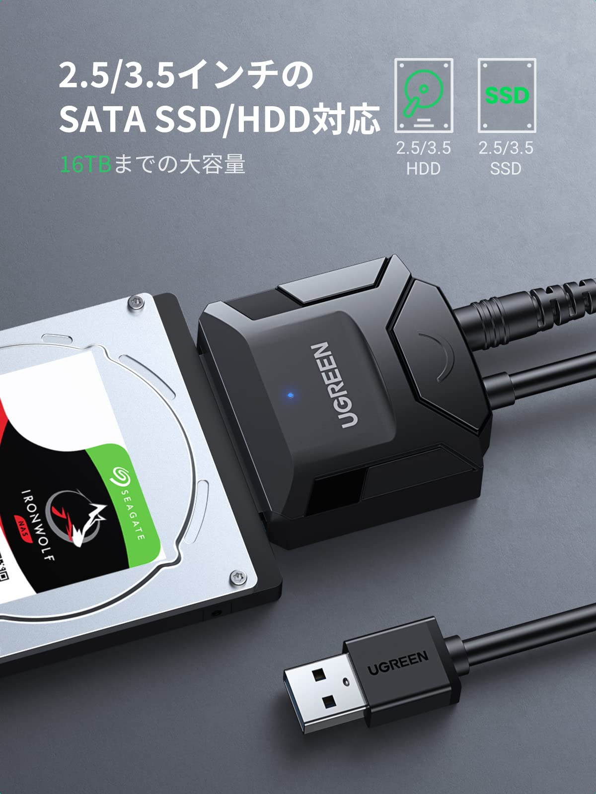 UGREEN SATA USB変換ケーブル sata usb 変換アダプター USB3.0接続 2.5/3.5インチ 6TB HDD/SSD用 電源アダプター付き UASP対応 6Gbps転送速度