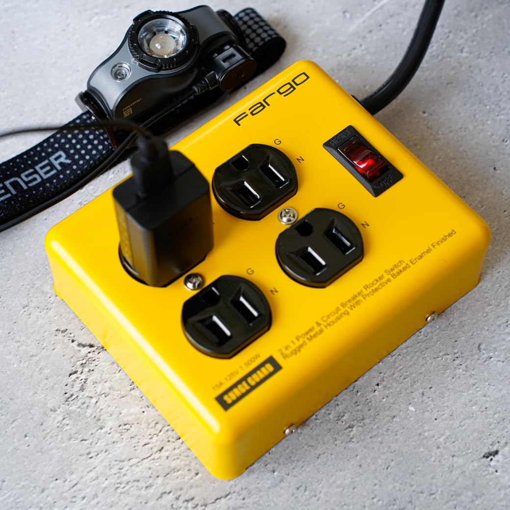 Fargo 延長コード 4個口 雷サージ 一括スイッチ付 STEEL TAP スチールタップ ファーゴ 電源タップ 鉄製 おしゃれ インテリア DIY ガレージ イエロー 黄色 1.8m