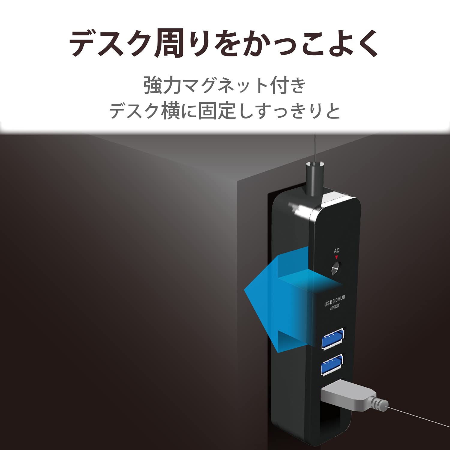 エレコム USB3.0 ハブ 4ポート ACアダプタ付 セルフ/バス両対応 マグネット付 ブラック MacBook / Surface Pro / Chromebook他 ノートPC Nintendo Switch対応 U3H-T410SBK