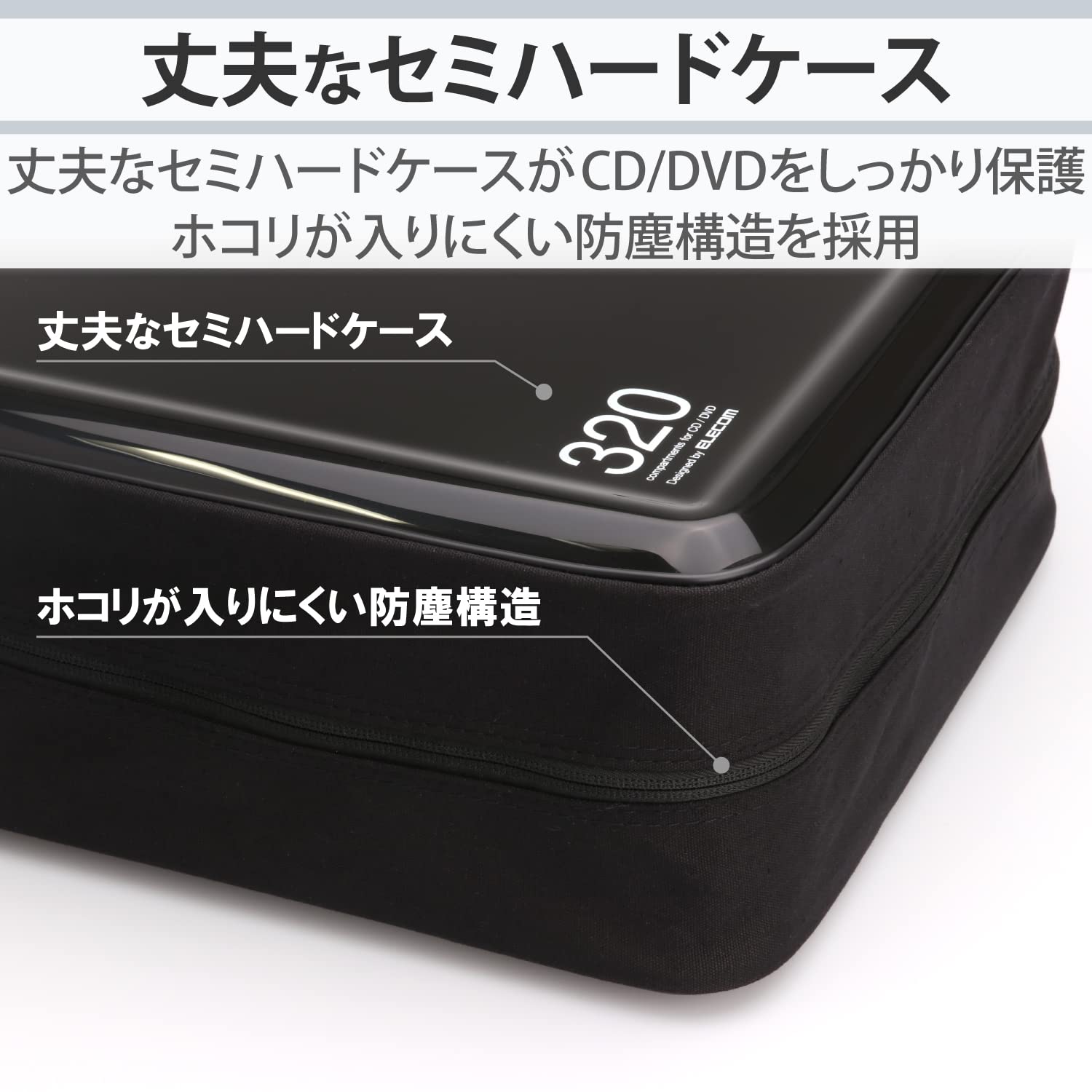 エレコム(ELECOM) DVD CDケース セミハード ファスナー付 320枚収納 ブラック CCD-H320BK