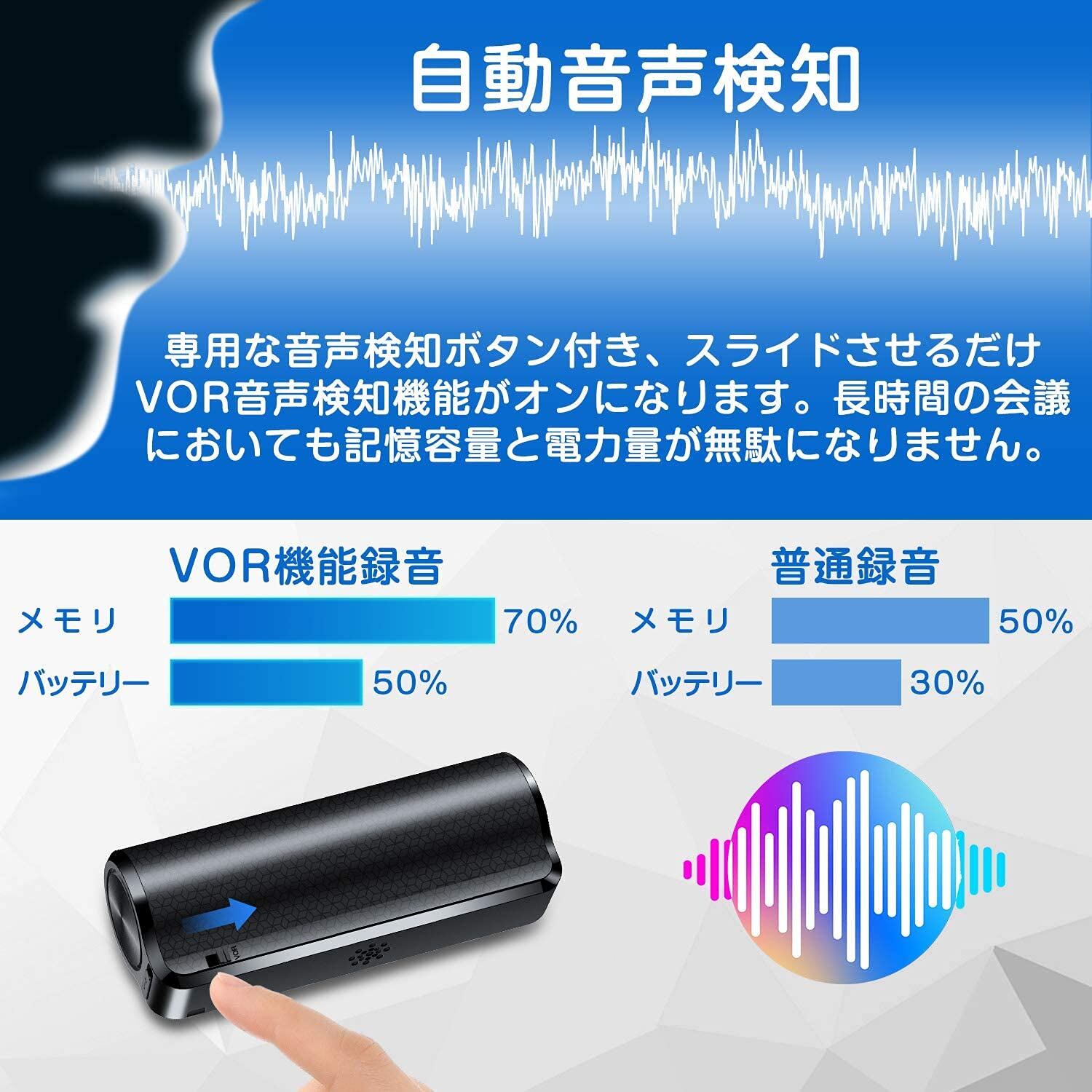 音がしたら自動的に録音がはじまり、音が聞こえなくなると自動的に音声データを保存する、仕掛け録音機能(VOR機能)付きの高性能モデルです。