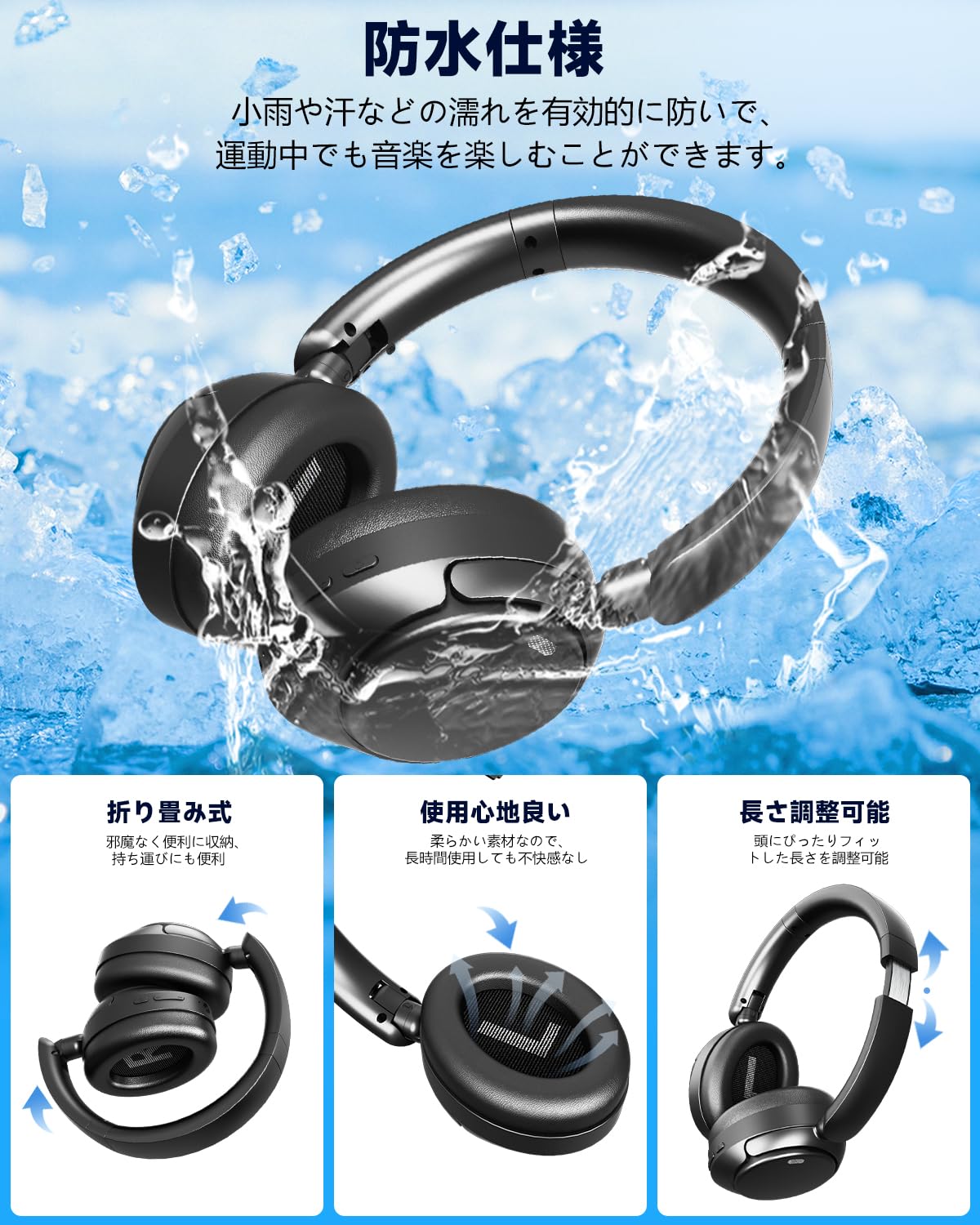 ヘッドホン bluetooth ワイヤレスヘッドホン 6つのシリコンマイク搭載ANCノイズキャンセリング最大80時間再生AIスマートIPX7防水2026最新のBluetooth 5.4有線無線両用ハンズフリー通話対応、マルチポイント接続対応装着が快適で軽量/防漏音/包耳式デザイン/折りたたみ可能です/ゲーム/テレワーク/通学/通勤/スポーツ/音楽用 iPhone/Android対応