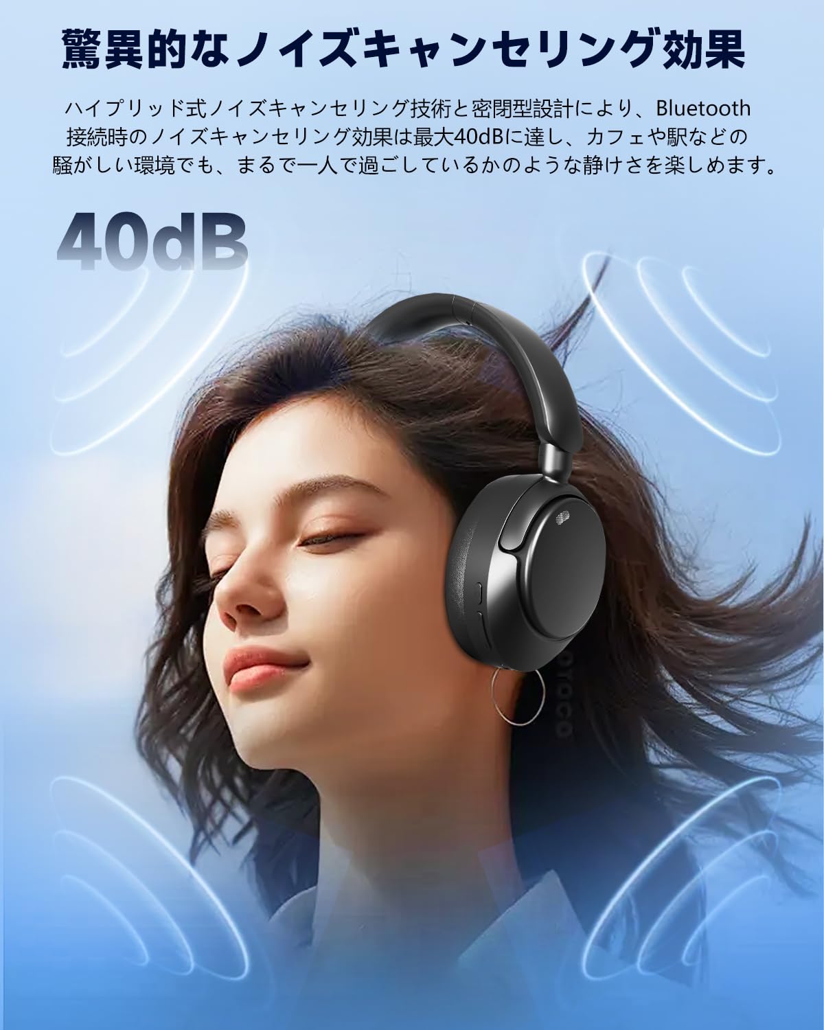 さらに ANC ノイズキャンセリング機能により、通勤中の騒音やオフィスの背景音などを効果的に遮断し、没入感のある音楽鑑賞や集中したオンライン会議が可能になります。