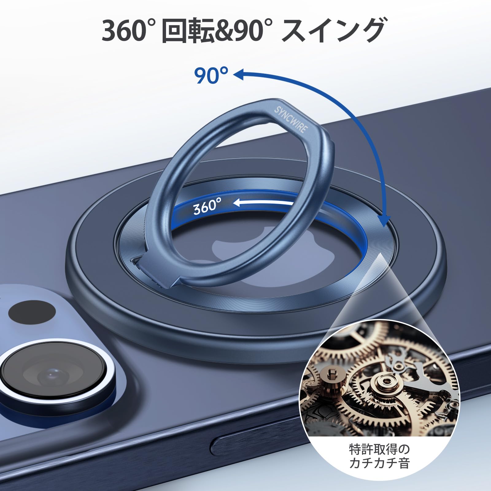 【NEWチタンブルー】 Syncwire MagSafe リング - 両面マグネット スマホリング 超强磁力 360度回転 マグセーフ リング マグネット バンカーリング 薄型 角度調節可能 簡単着脱 iPhone 15 Pro/15 Pro Max/ 15 /14 Pro Max/14 Pro/14/13/12 などに対応 アンドロイド 全機種対応 2枚メタルリング付