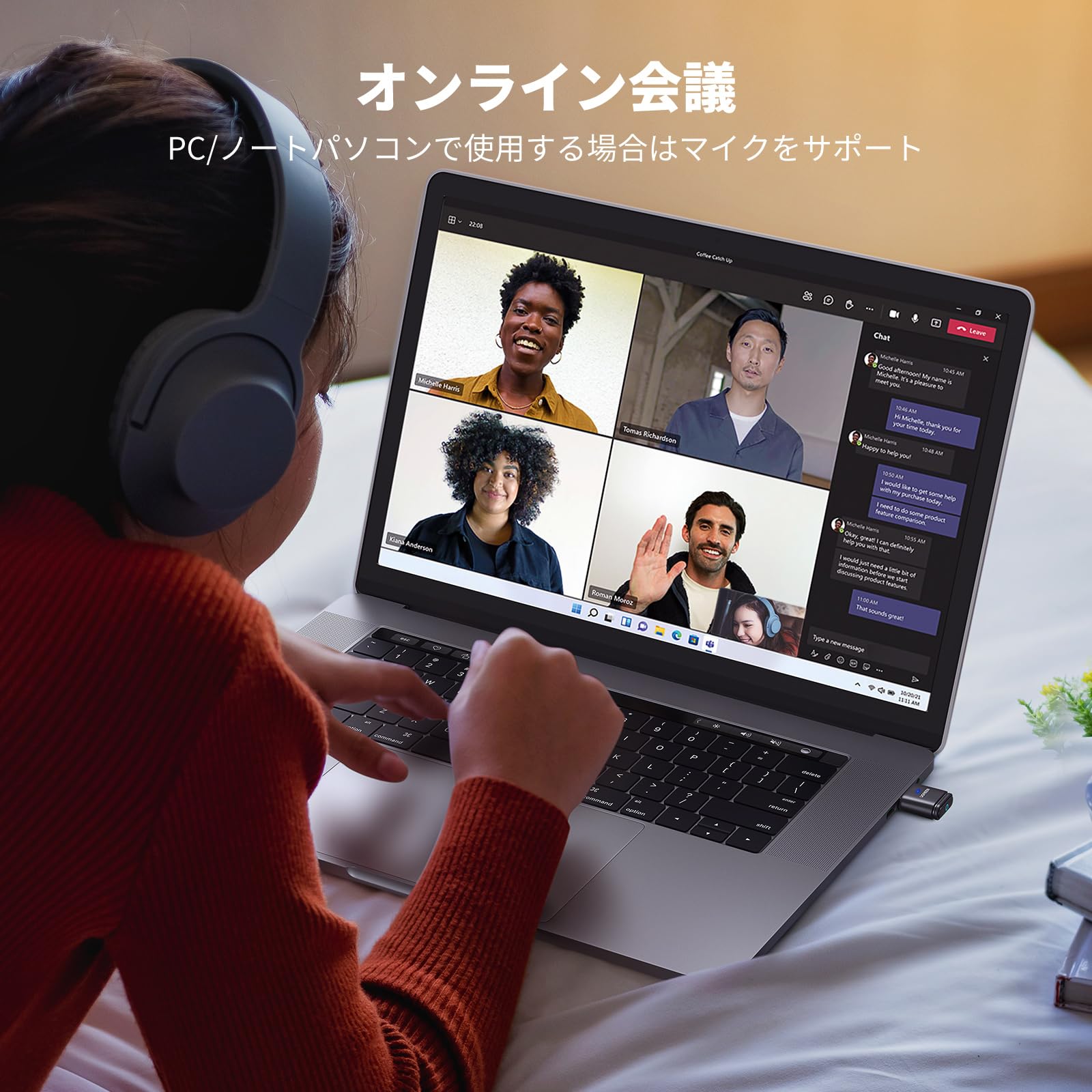 Skype、Zoom、Teams、Meet など、Windows PC で使用する場合、Bluetooth アダプターは音楽モードと通話モードを自動的に切り替えます。