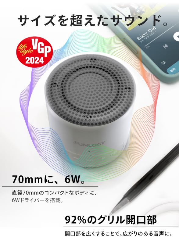 FUNLOGY Portable Mini(スピーカー/ポータブルスピーカー)【VGP2024受賞】防水対応/小型/Type-C 充電式/バッテリー 内臓/Bluetooth対応/ワイヤレス / IP67 お風呂 で使える/pc スマホ 接続OK/TWS 対応【日本ブランド】(ホワイト)