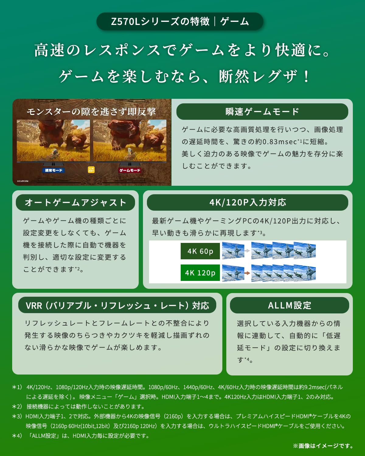 ■ 【瞬速ゲームモード】迫力ある映像と約0.83msecの低遅延で、快適にゲームプレイが楽しめる