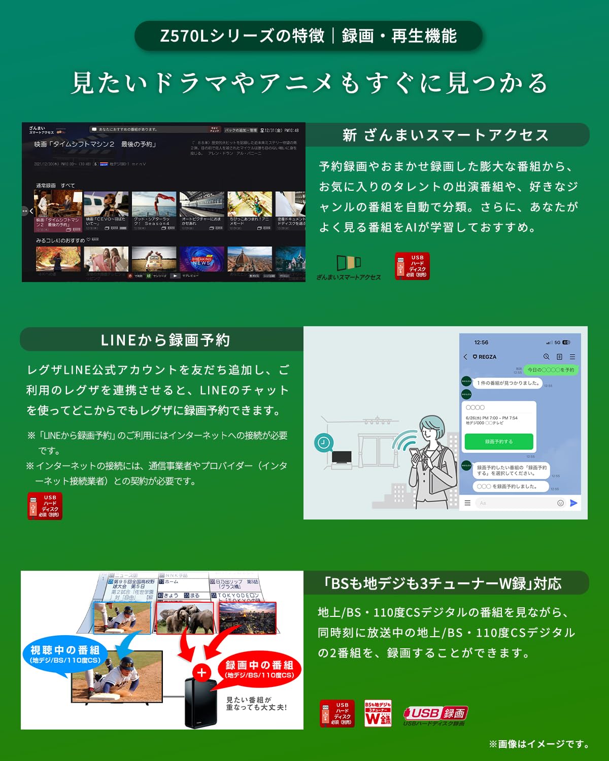 REGZA レグザ テレビ 50Z570L (50インチ / 4K テレビ/倍速液晶/Dolby Atomos/ダブルチューナー / 2番組同時録画 / スマートテレビ / 2022年モデル)