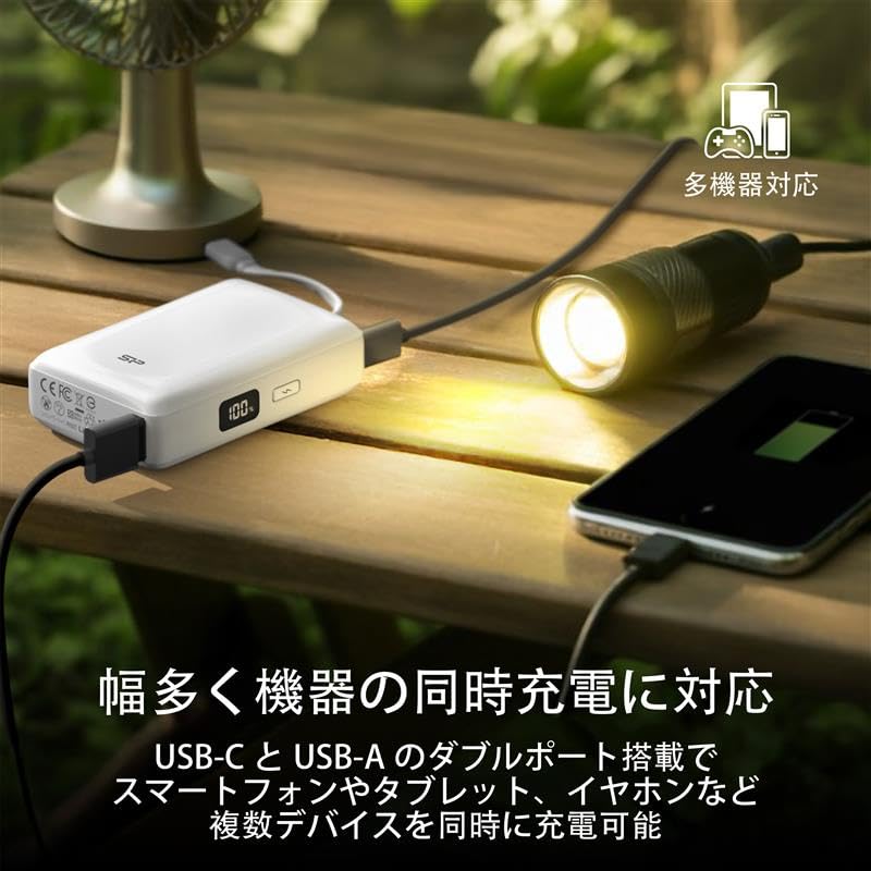 シリコンパワー 急速充電 10000mAh CP10 ブラック QC3.0 20W/PD対応 大容量 モバイルバッテリー USB-C ケーブル一体型 ディスプレイ搭載【PSE認証済み】SP10KMAPBKCP101K