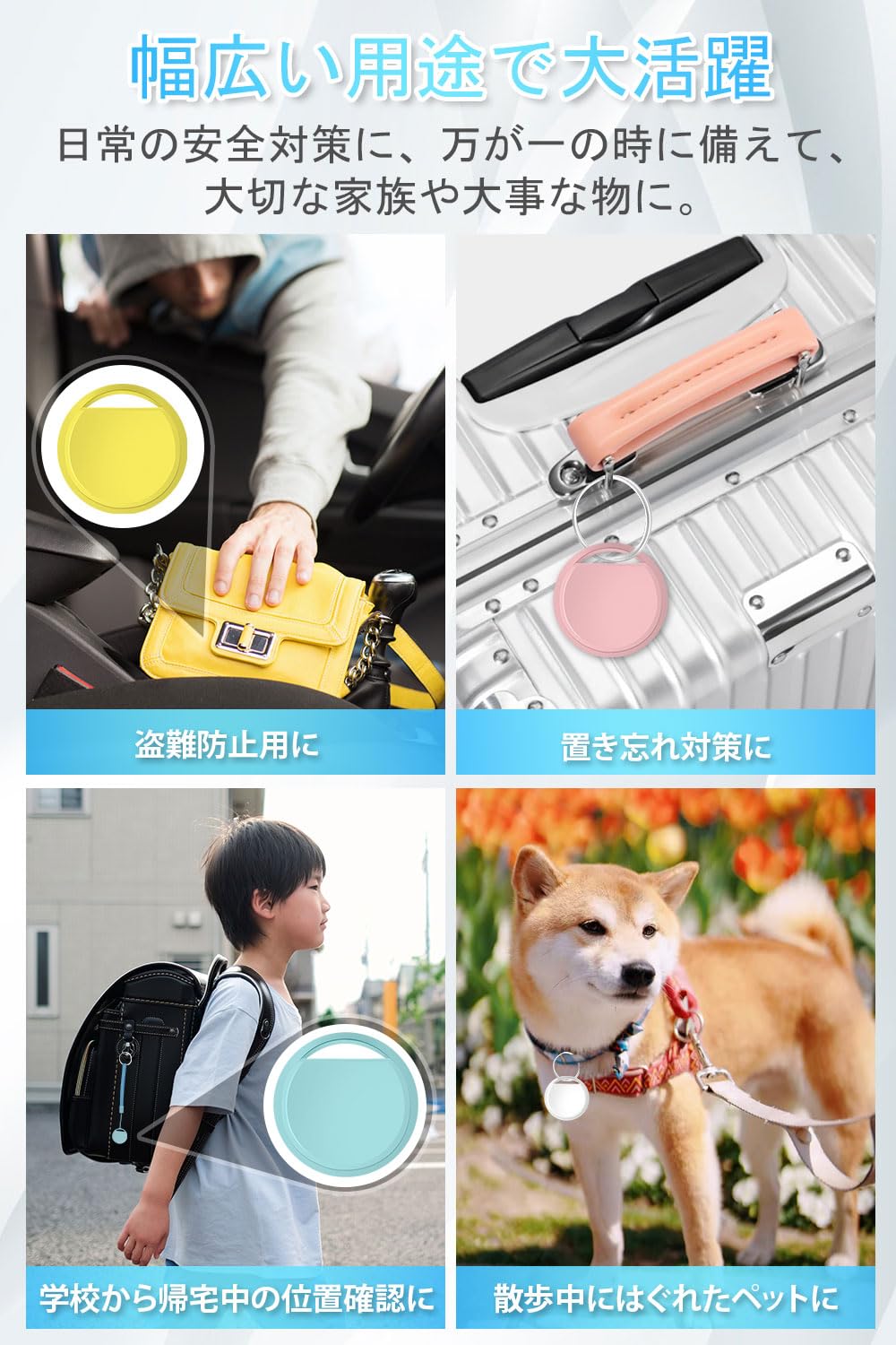 エアタグ 4個セット airtag スマートタグ gpsタグ gps 子供 紛失防止タグ スマートトラッカー gps 小型 発信機 超軽量・超ミニ Appleの「探す」に対応(iOS端末のみ) 物探す 車両追跡 盗難対策 忘れ物防止 タグ 追跡タグ 防水防塵 年寄りに良い 鍵/バッグ/財布/荷物/スーツケース/犬/猫の首輪に掛ける 4つの同じ色合いのストラップ付き